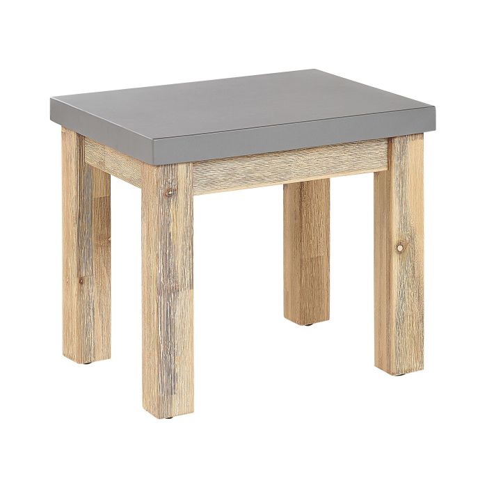 If you're keen on industrial style and outdoor dining, this stool is definitely for you. The piece perfectly combines the raw vibe of the fibre-concrete seat with a wooden base. The strong and sturdy acacia wood in natural finish guarantees durability and simultaneously offers the classic look, taking advantage of its natural aesthetics. This versatile stool makes a wonderful addition to virtually any outdoor area, from a small balcony to a large garden. Pair it with a matching table and create the perfect setting for your outdoor get-togethers. Details: Color: Grey, Light Wood. Main material: Fibre Cement. Additional material: Acacia Wood. Weight: 11 Assembly: Full Assembly Required Wood Origin: Vietnam Weight Capacity: 150 Seat Height: 45