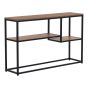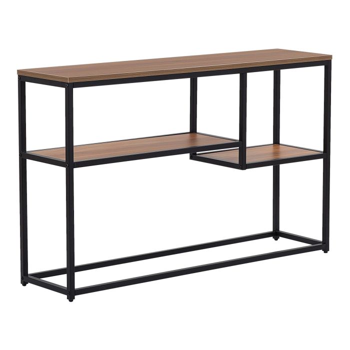 Functional and stylish, this console table fits into any modern, traditional or industrial-inspired setting. With its two shelves and a wide top, it offers plenty of space to store books, souvenirs and magazines. Whether placed in a living room, hallway or bedroom, it quickly became a useful addition to rooms' space. Details: Color: Dark Wood, Black. Main material: MDF. Additional material: Metal, MDF. Weight: 16 Assembly: Full Assembly Required