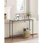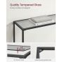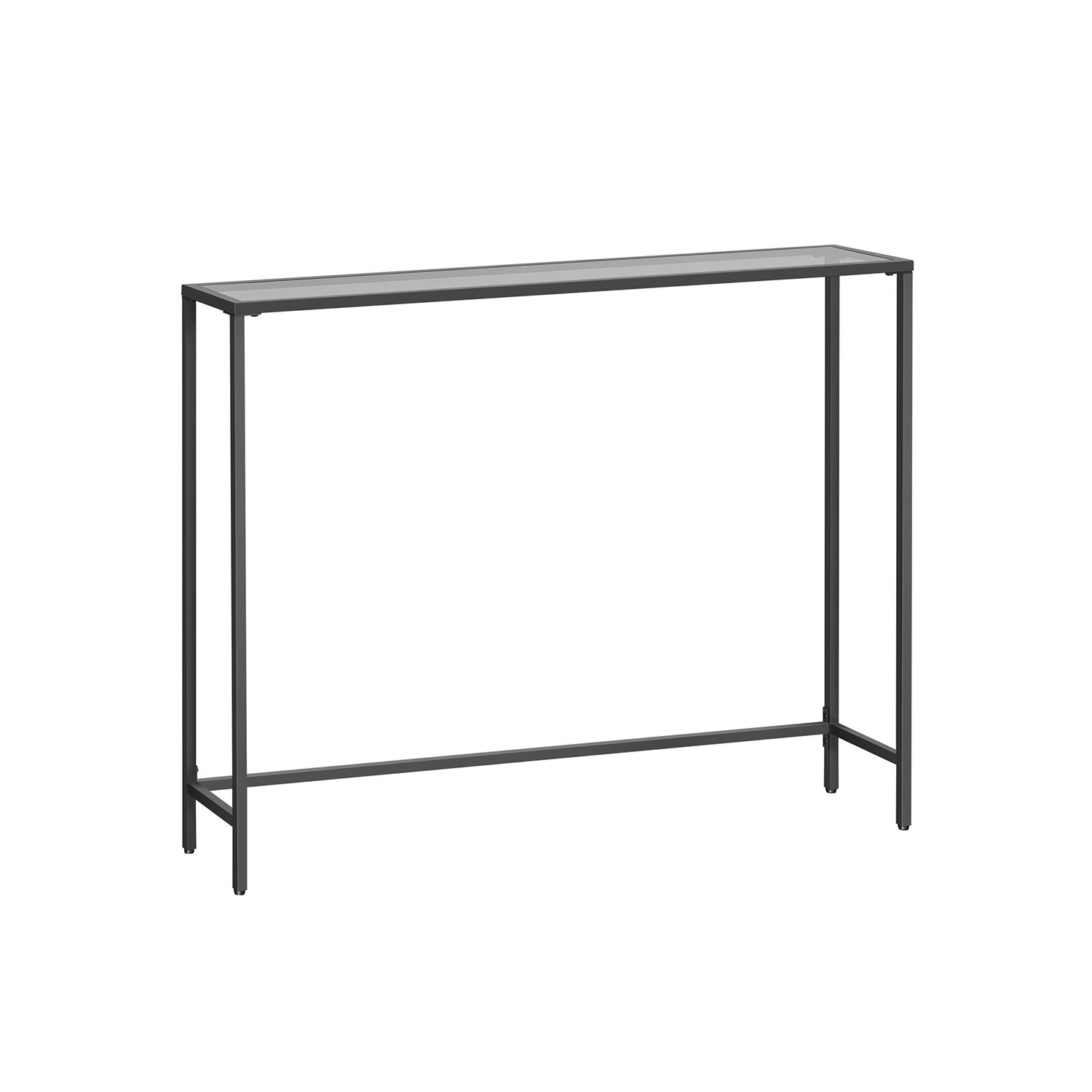Elevate your living space with the VASAGLE Console Table. This stylish piece, finished in Ink Black and Slate Grey, features a modern design with a durable tempered glass tabletop. Perfect as a side table or sofa table, it offers easy assembly and adjustable feet for stability on any surface.