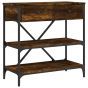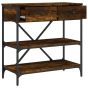 Add a touch of elegance to your entryway, living room, or hallway with this stylish console table. Durable material: The hall table is made of engineered wood. The engineered wood is of exceptional quality with smooth surface and also features strength, stability and resistance to moisture.Sturdy frame: The metal frame ensures sturdiness and stability.Ample storage space: The sofa table with drawers and shelves offers ample storage space for keeping your daily essentials well organised and within reach.Sturdy tabletop: The sturdy tabletop of the hallway table is perfect for placing your framed photos, potted plants, and other decorative items. Warning:To prevent it being overturned, this product must be used with the provided wall attachment device.