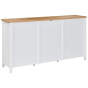 This stylish sideboard, crafted from durable MDF with a natural wood top, blends rustic charm with contemporary elegance. Designed with ample storage including spacious drawers, cupboards, and a wine rack, it offers practical organisation for dining rooms or kitchens. The soft finish and classic lines make it a versatile piece that complements both modern and traditional interiors. Perfect for storing dinnerware, glassware, and other essentials.