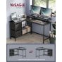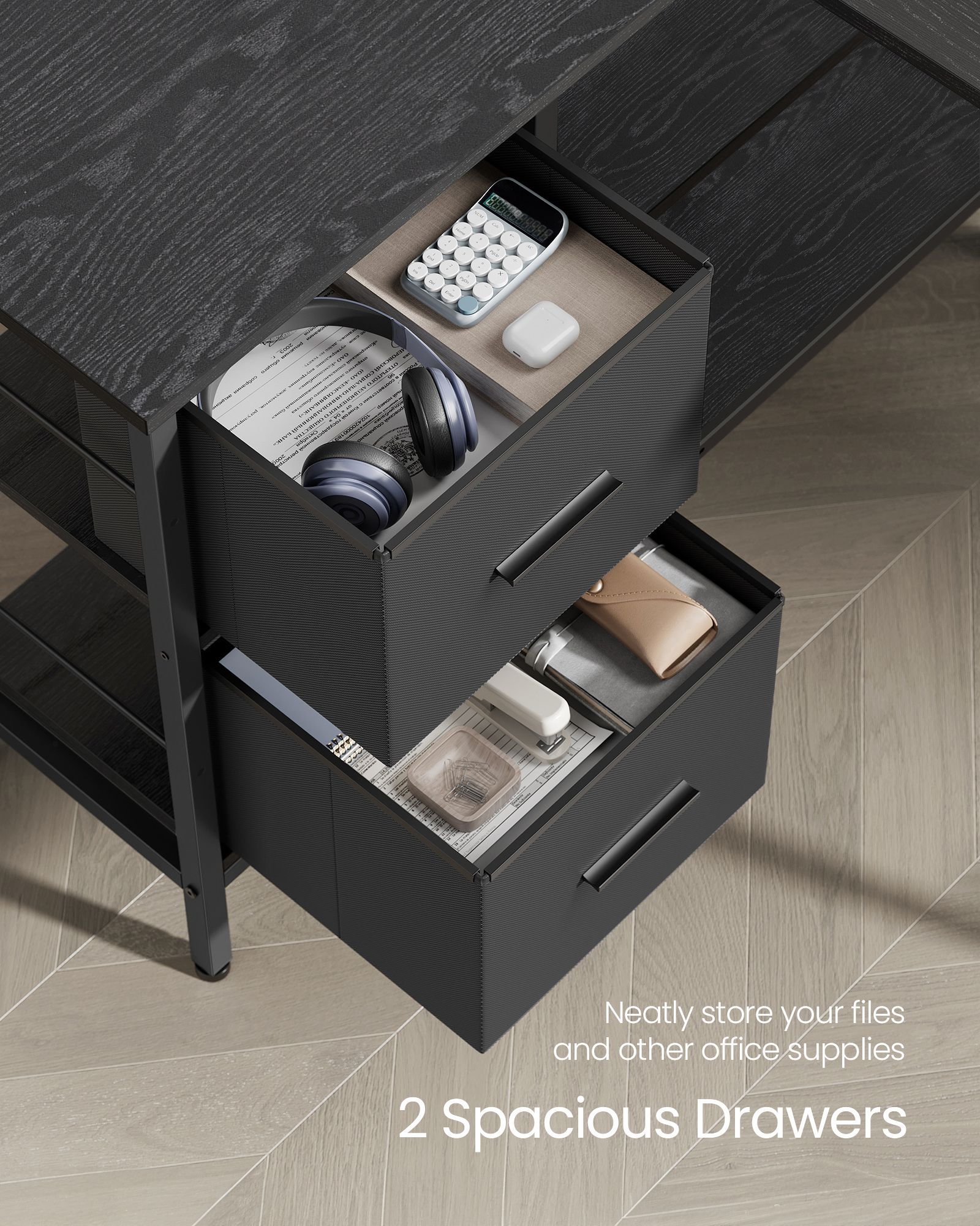 Corner Computer Desk - FINLIA L-Shaped 2 Drawers 135cm Wide - Ebony Black