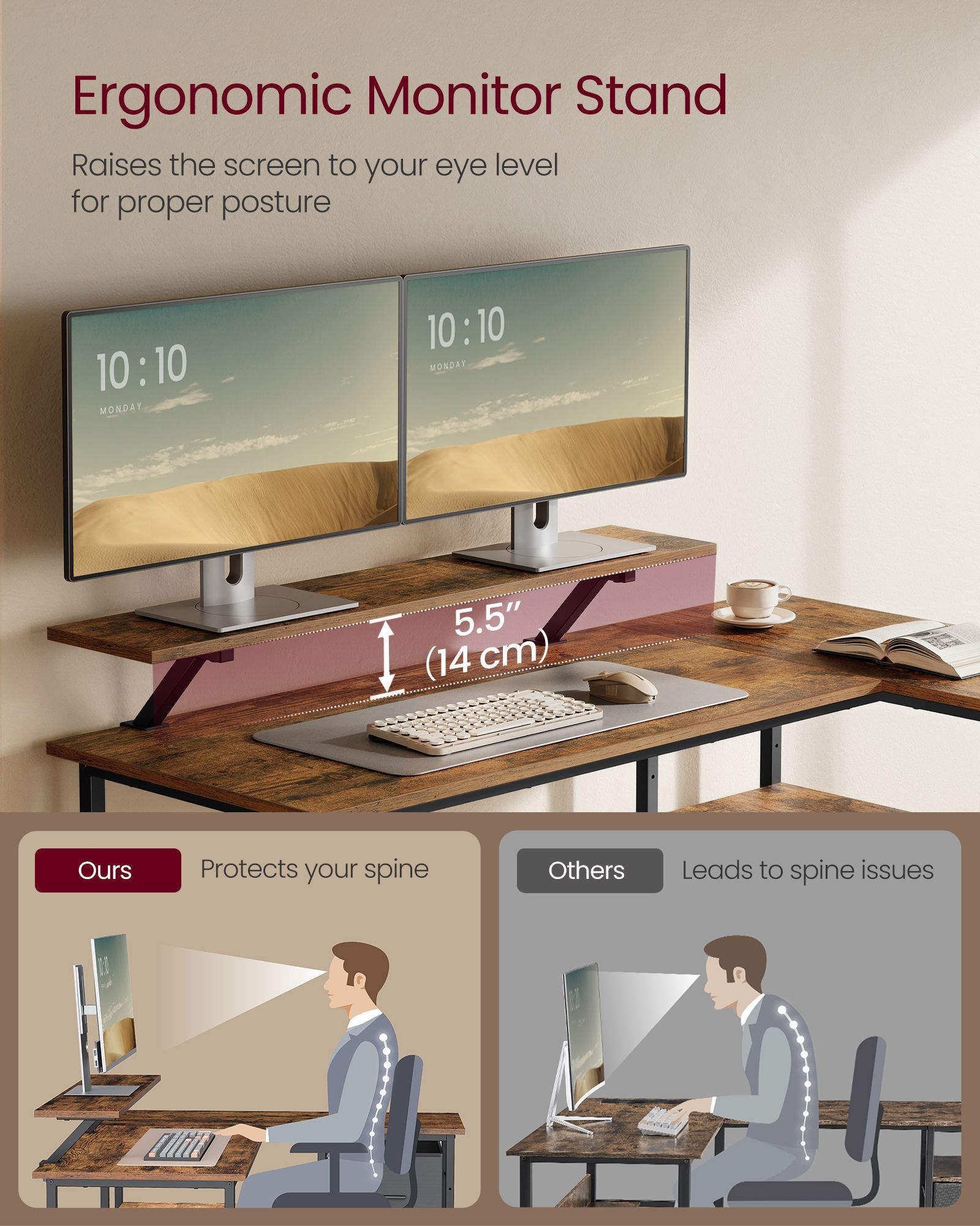 Corner Computer Desk - FINLIA L-Shaped with 2 Drawers 135 cm Wide Rustic Brown