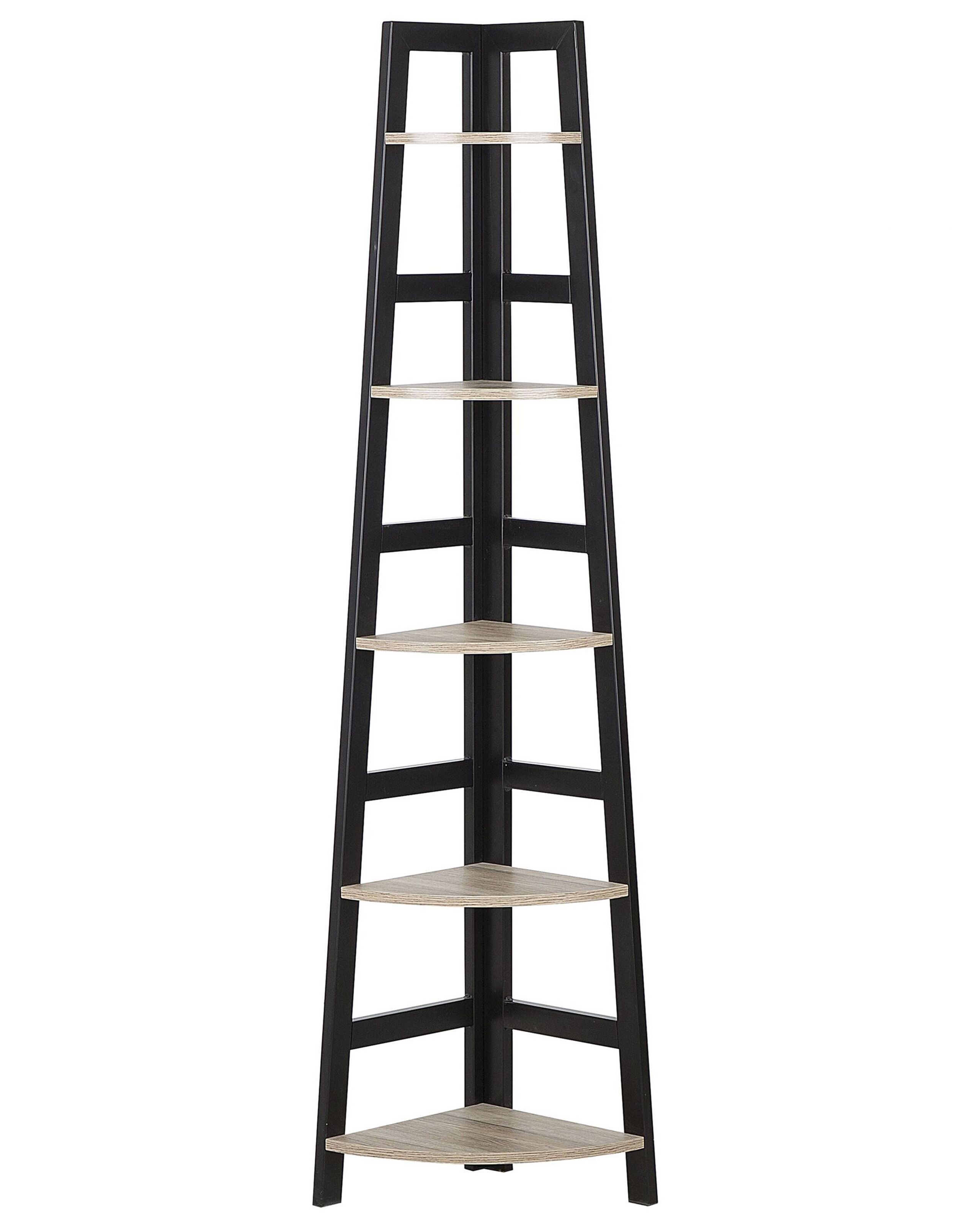 Corner Ladder Shelf Black and Light Wood BEXLEY