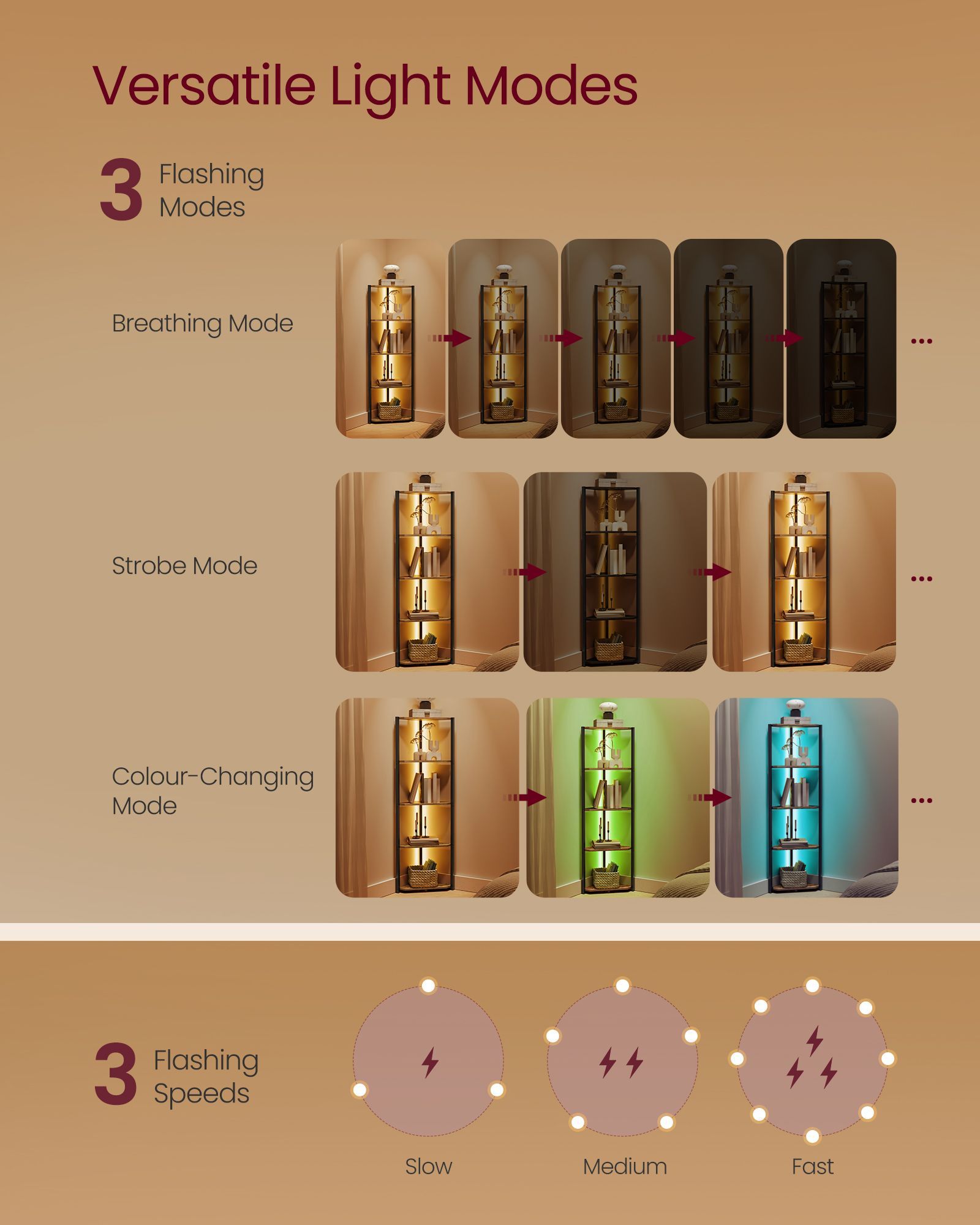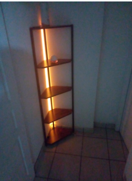 Corner Shelf - LUSVA 5 Tier Bookcase with Adjustable LED Light Rustic Brown