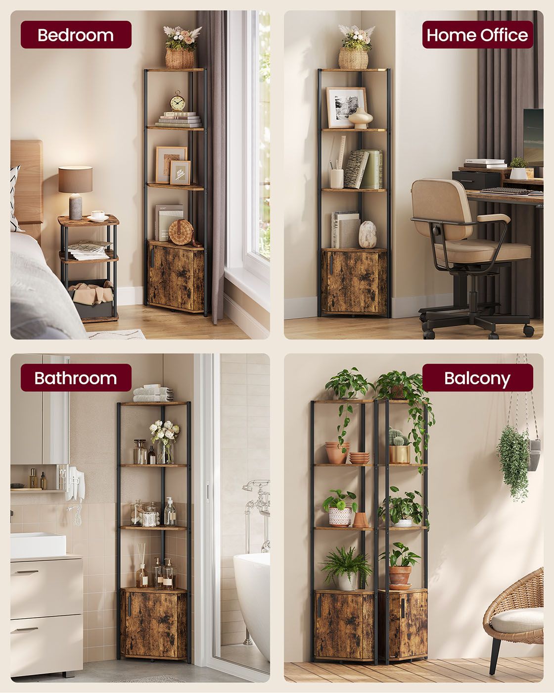 Organize your space with the VASAGLE 5-Tier Corner Shelf. This stylish unit, in rustic brown and ink black, fits perfectly into any corner, offering versatile storage for your living room, bedroom, kitchen, or bathroom. Its durable construction and multi-tier design make it ideal for displaying books, decor, or essentials.