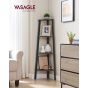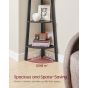 This VASAGLE 4-Tier Corner Shelf Unit, in a stylish charcoal gray and matte black finish, is an industrial-inspired storage solution perfect for any home. Its ladder design maximizes vertical space, making it ideal for organizing books, decor, or plants in your living room, bedroom, or balcony. Key features include its sturdy construction and rustic brown aesthetic.