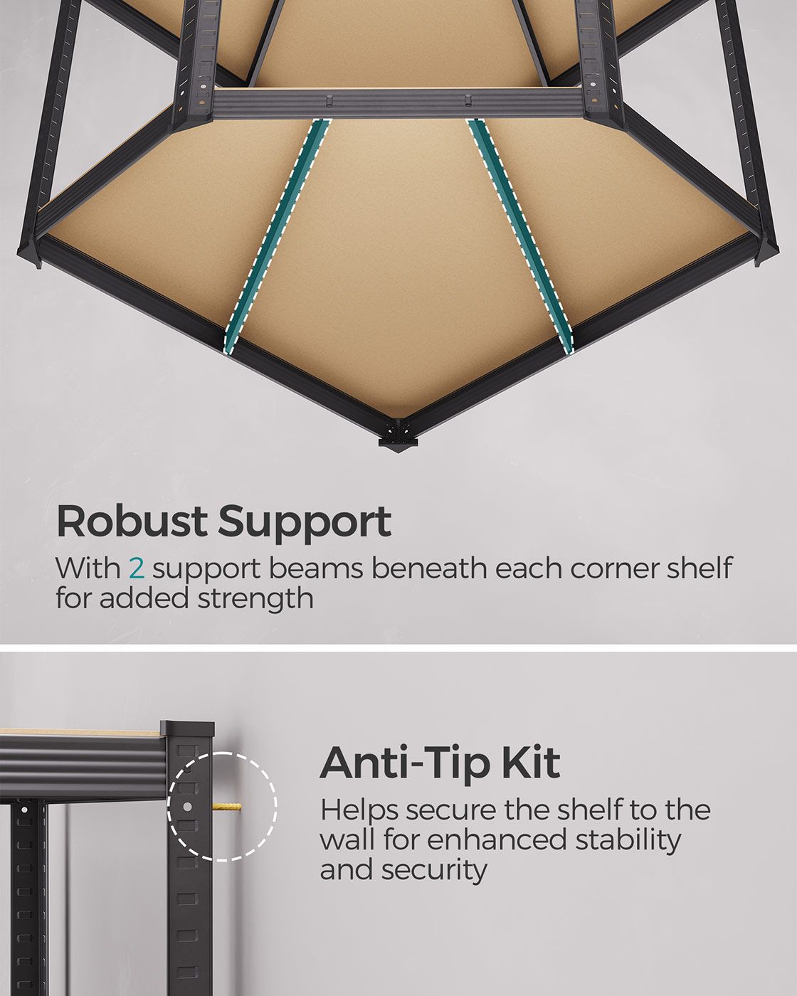 Corner Shelf - TARLIA 4 Tier Heavy Duty Metal Shelf - Black