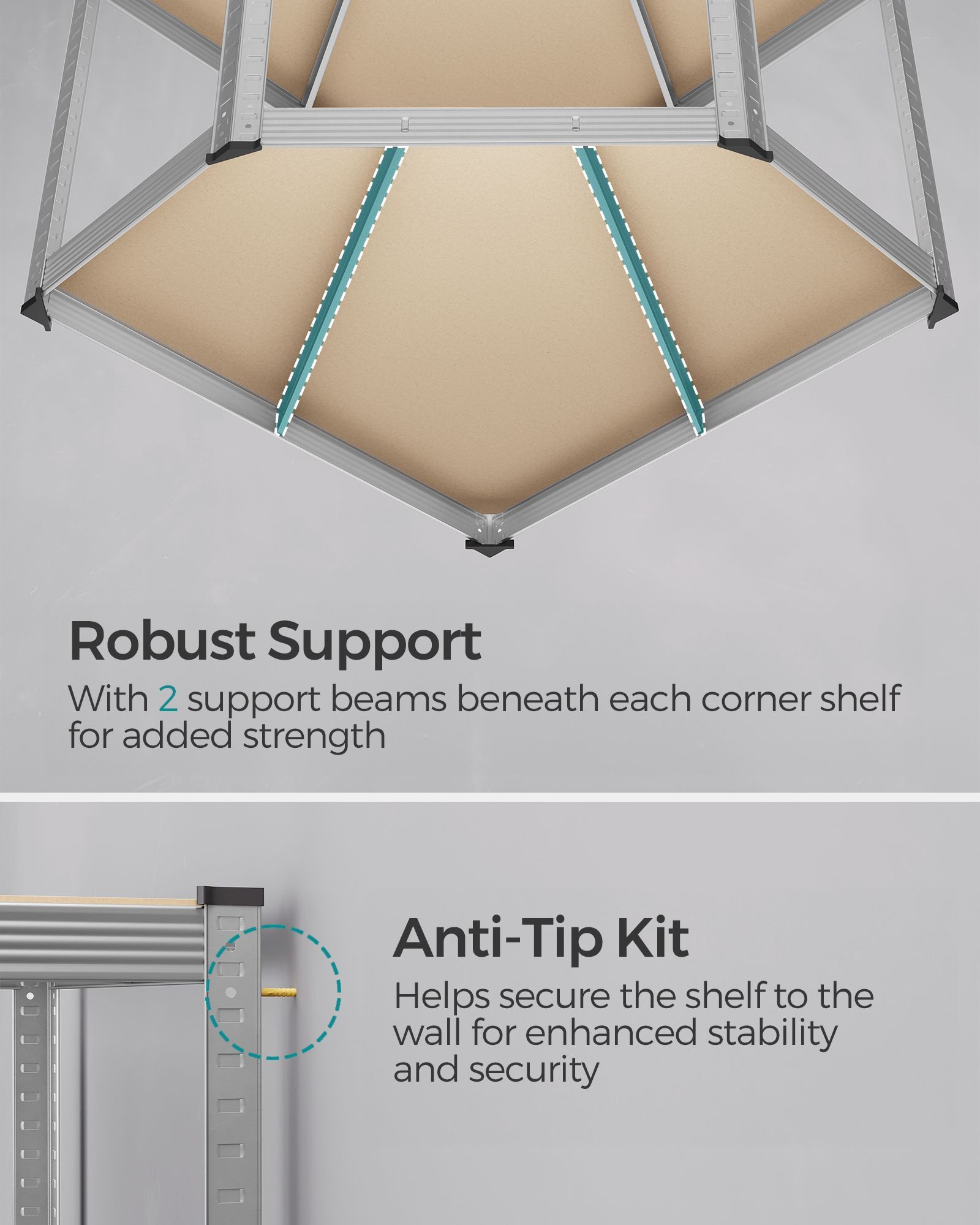 Corner Shelf - TARLIA 5 Tier 90 cm Wide Faux Wood and Metal - Silver and Beige
