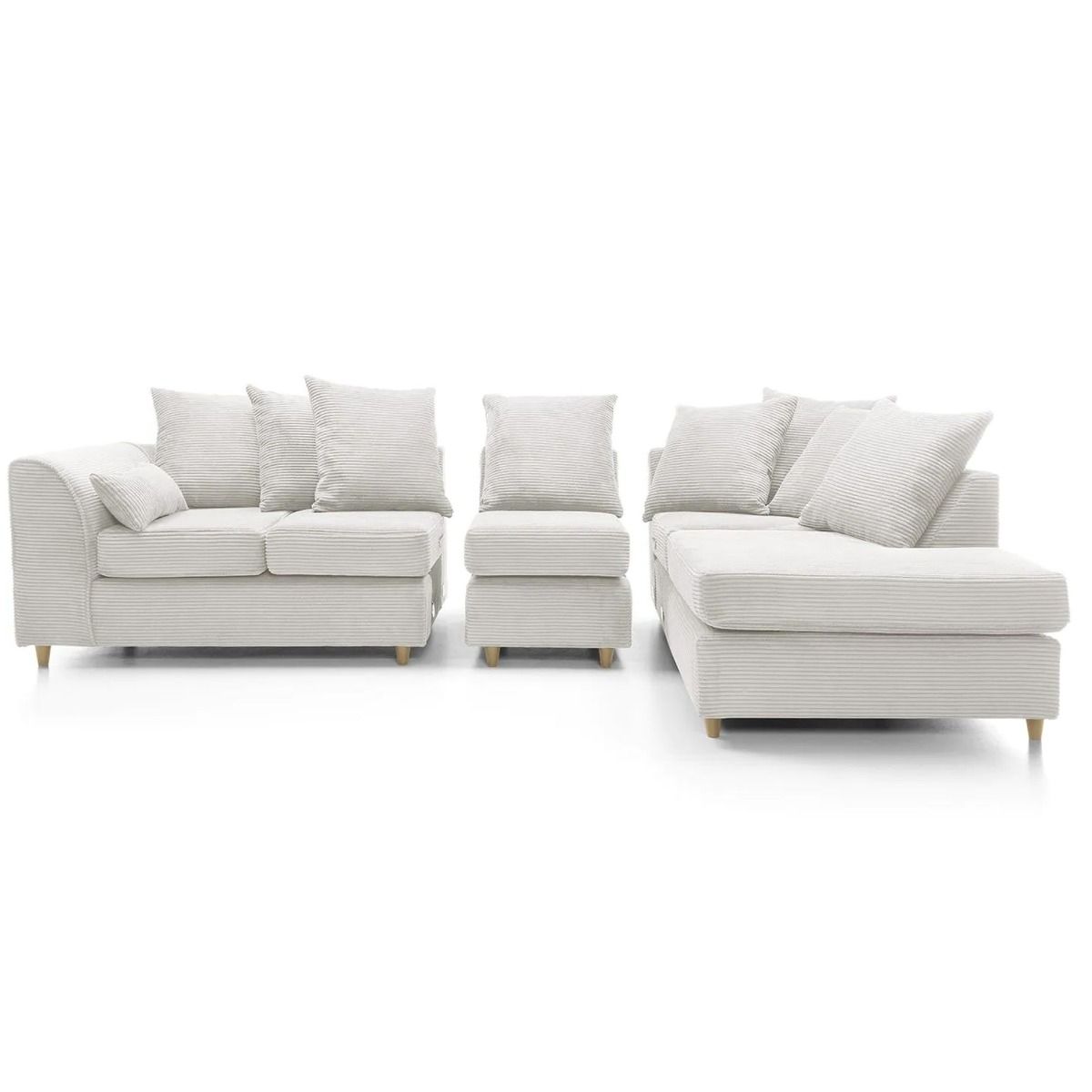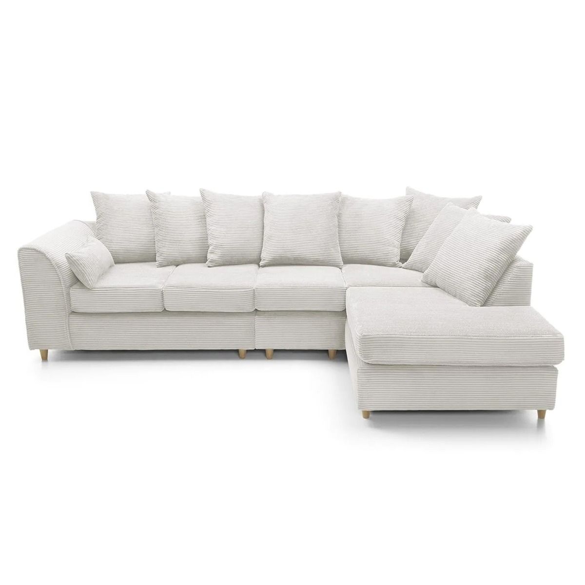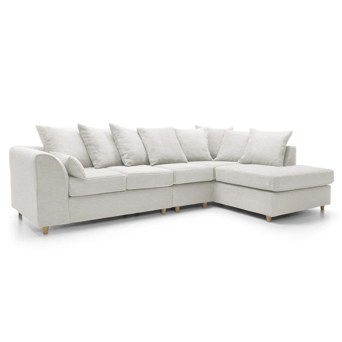 Corner Sofa - DESMOND Jumbo Cord Large 5 Seater L Shaped Sofa - Right Hand Facing - White
