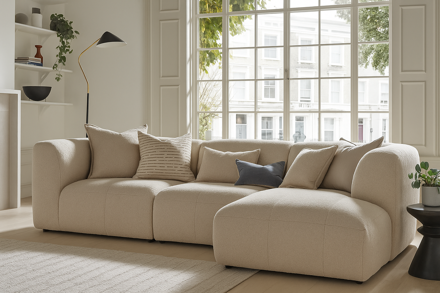 Corner Sofa - ESSAOUIRA Fabric 3 Seater Left Hand Facing - Sandshell