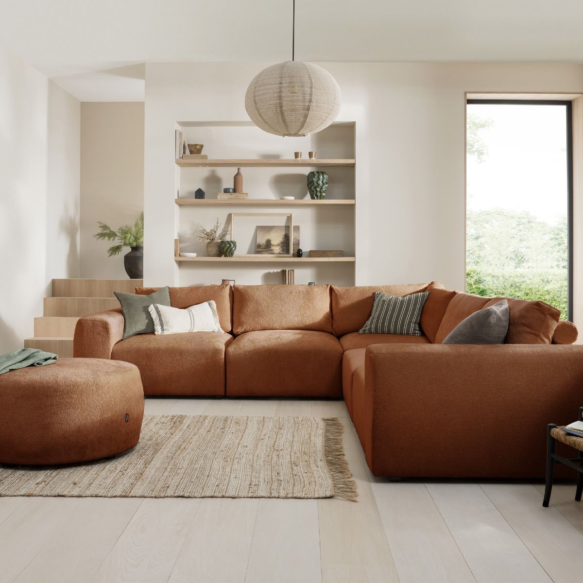 Corner Sofa - GRAZ Fabric 5 Seater Left Hand Facing - Deep Terra