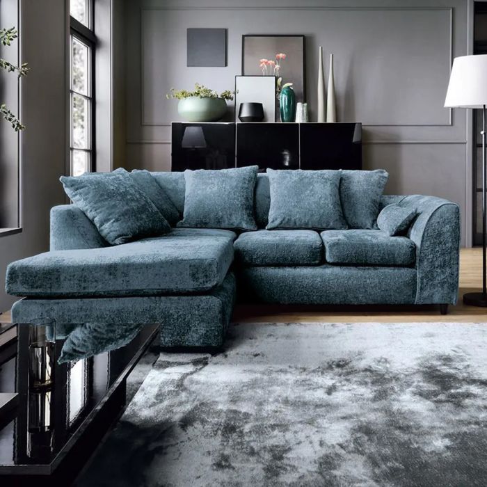 Corner Sofa - HENRY Crushed Chenille Fabric 4 Seater L-Shaped Sofa Left Hand Facing - Dark Blue
