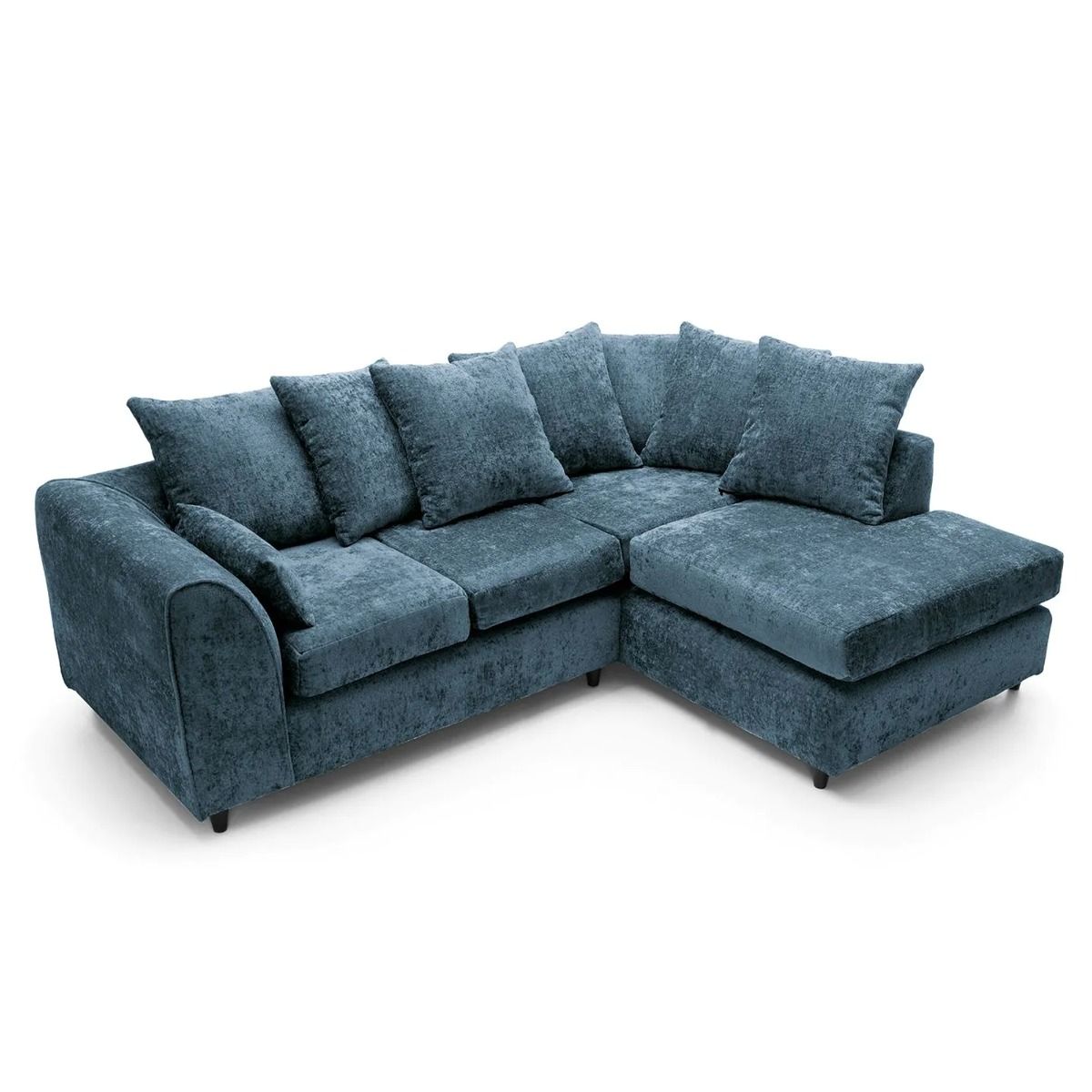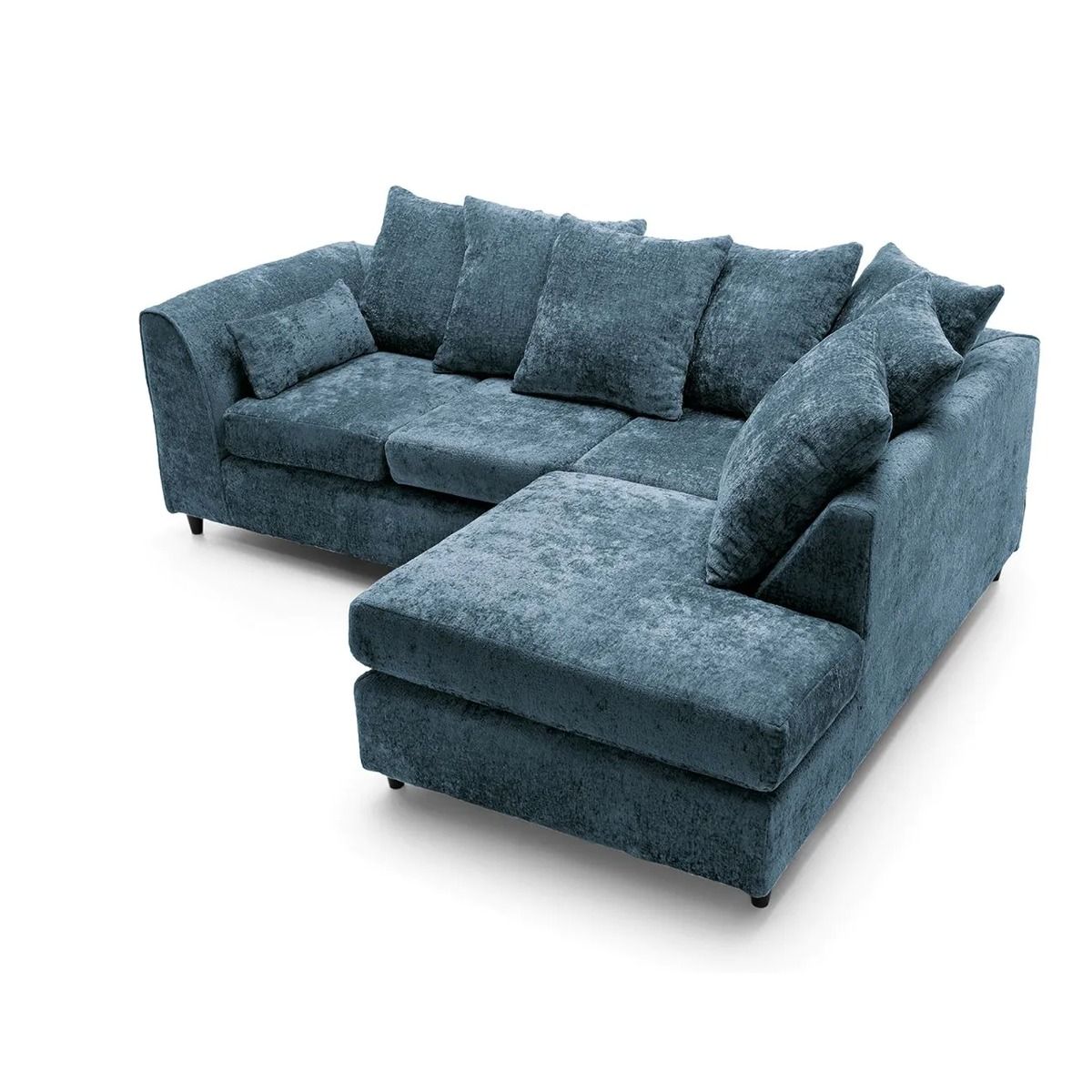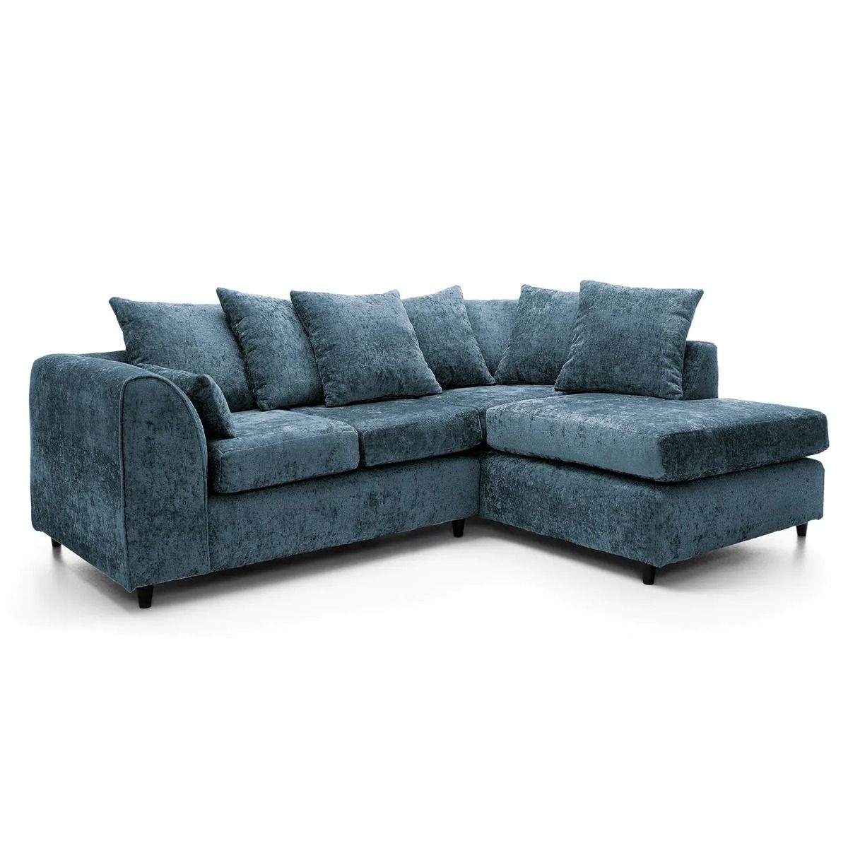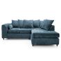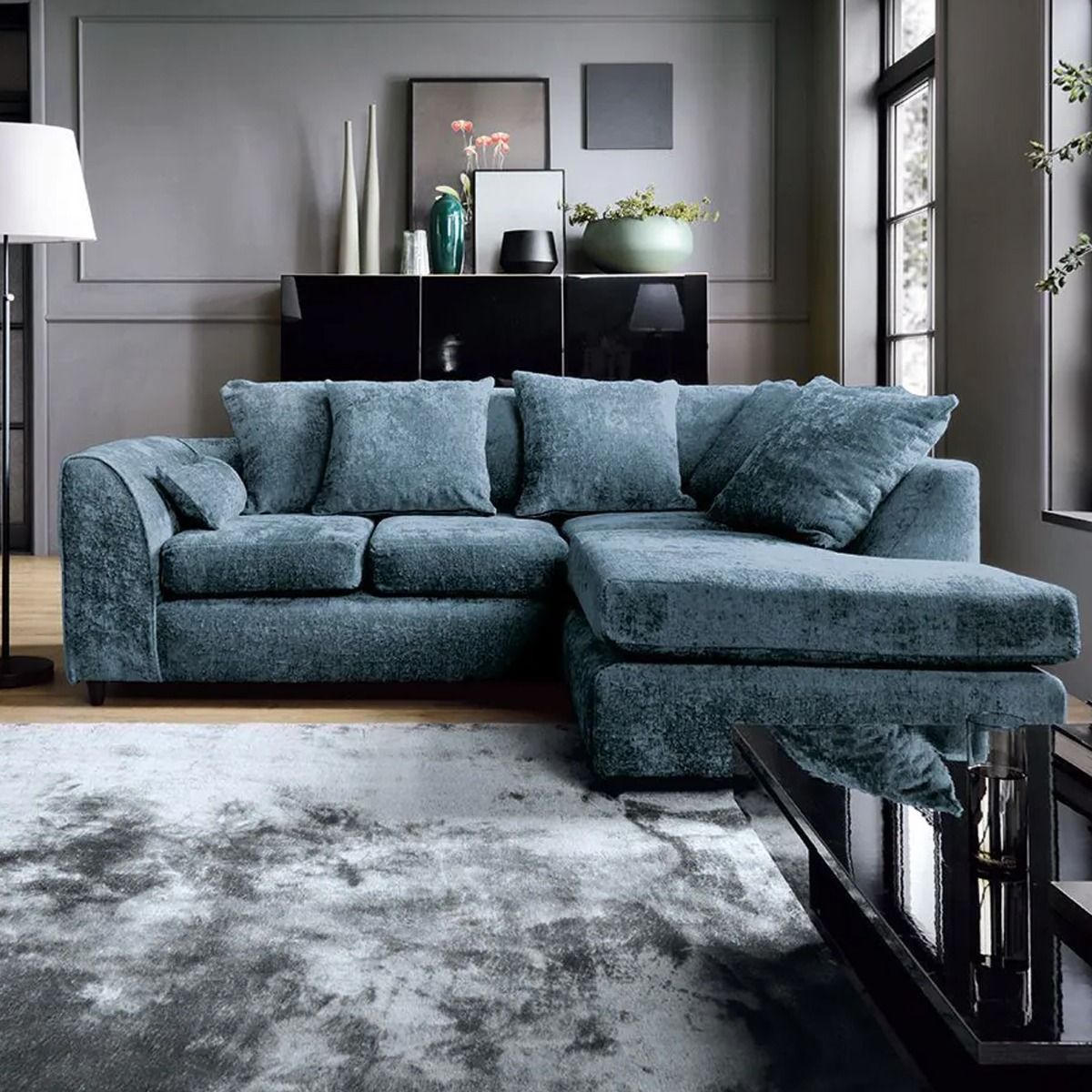 Corner Sofa - HENRY Crushed Chenille Fabric 4 Seater L-Shaped Sofa Right Hand Facing - Dark Blue