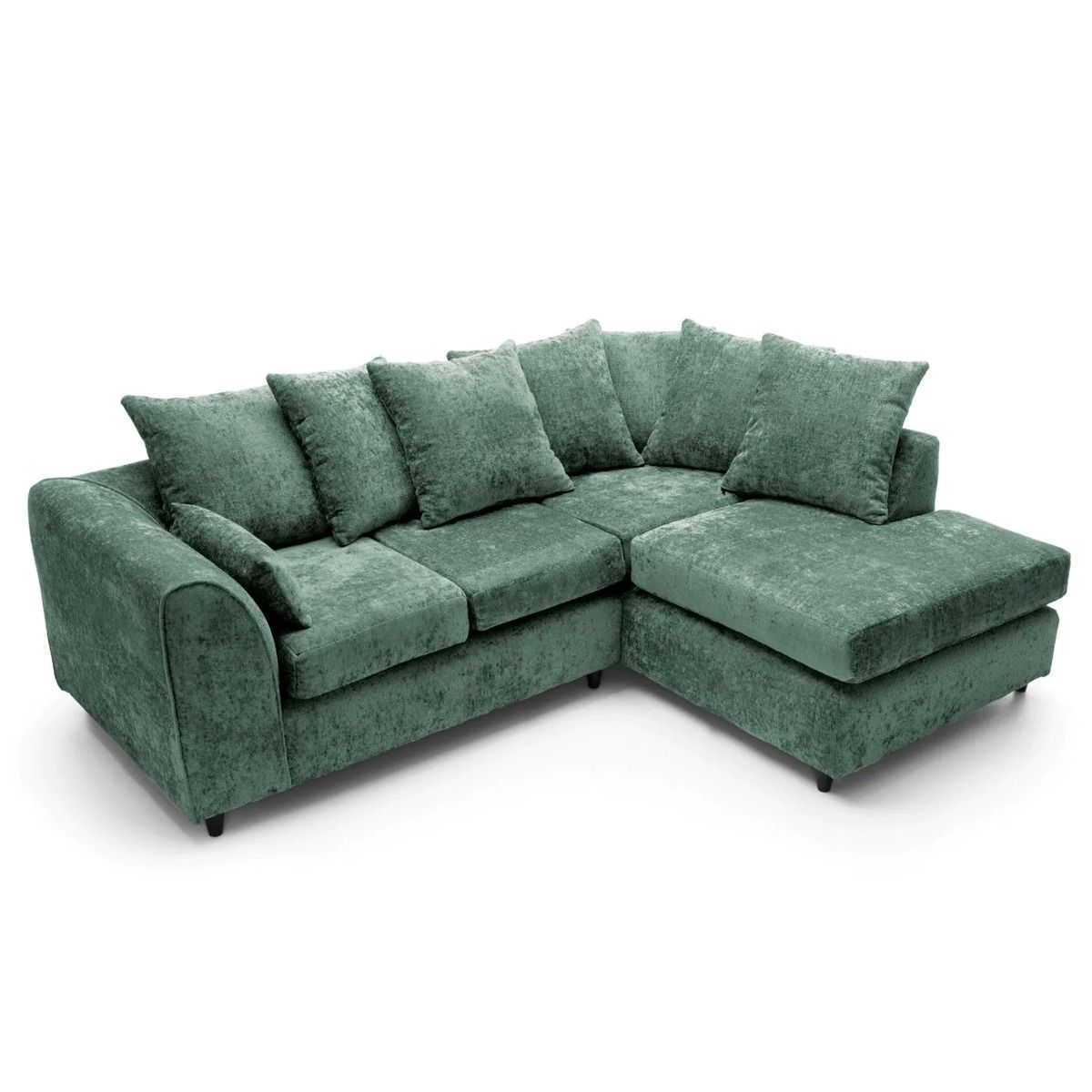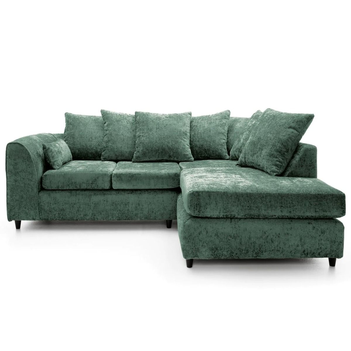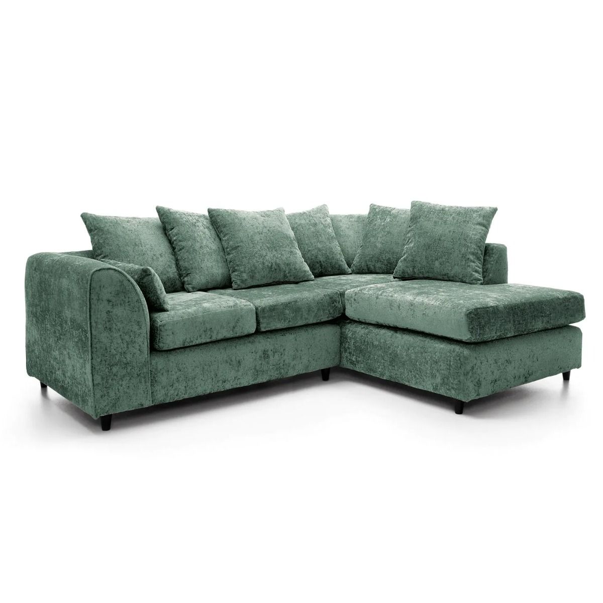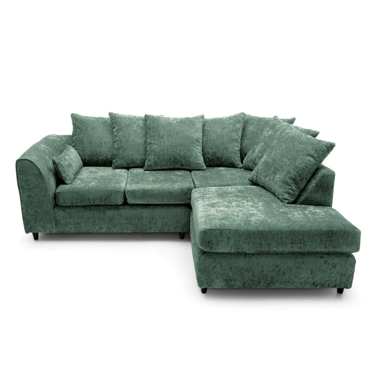 Corner Sofa - HENRY Crushed Chenille Fabric 4 Seater L-Shaped Sofa Right Hand Facing - Rifle Green