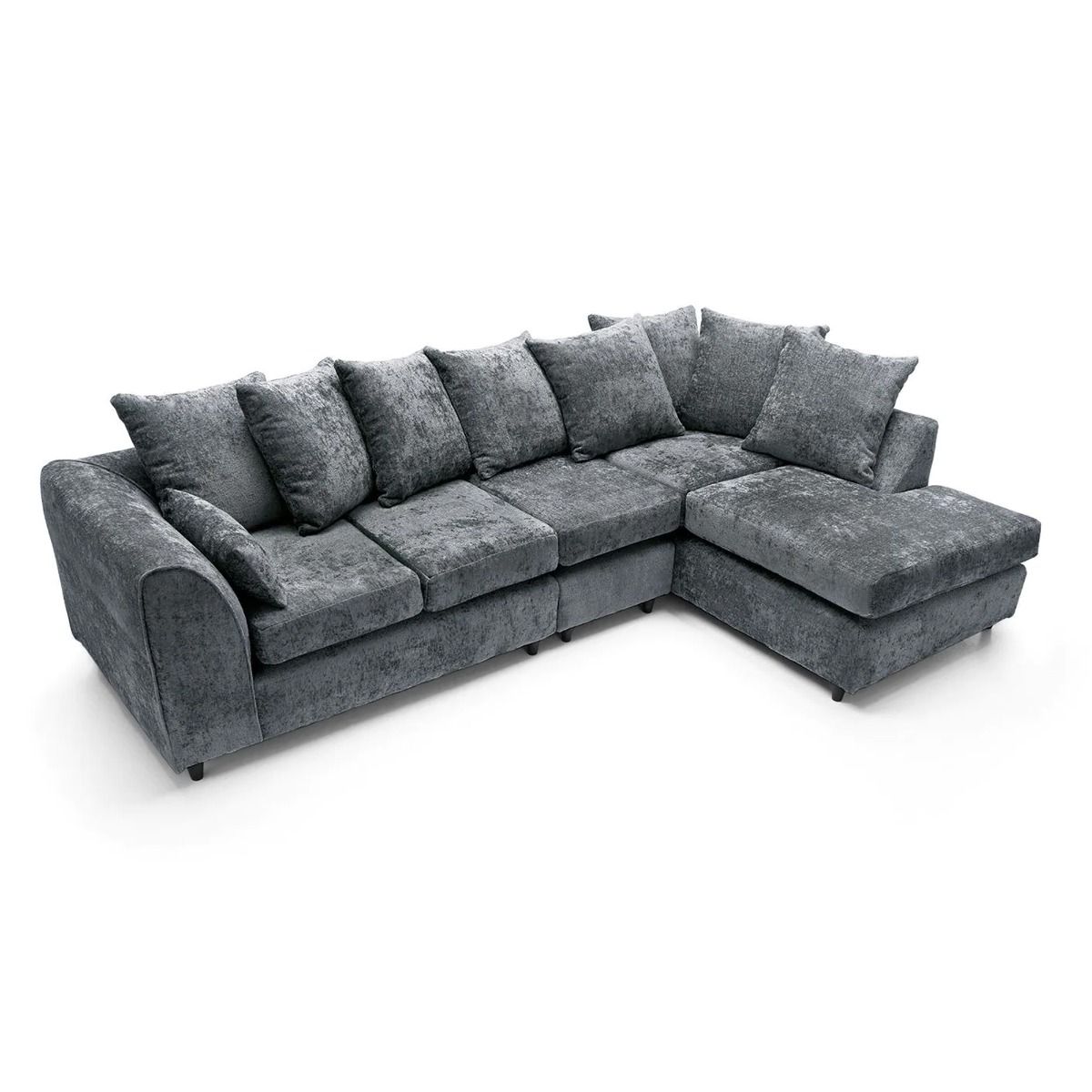 Corner Sofa - HENRY Crushed Chenille Fabric 5 Seater L-Shaped Sofa Right Hand Facing - Dark Grey