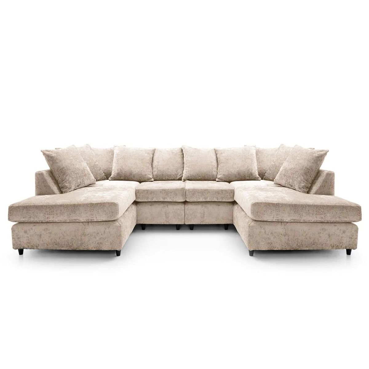 Corner Sofa - HENRY Crushed Chenille Fabric 6 Seater U Shaped Sofa - Cream