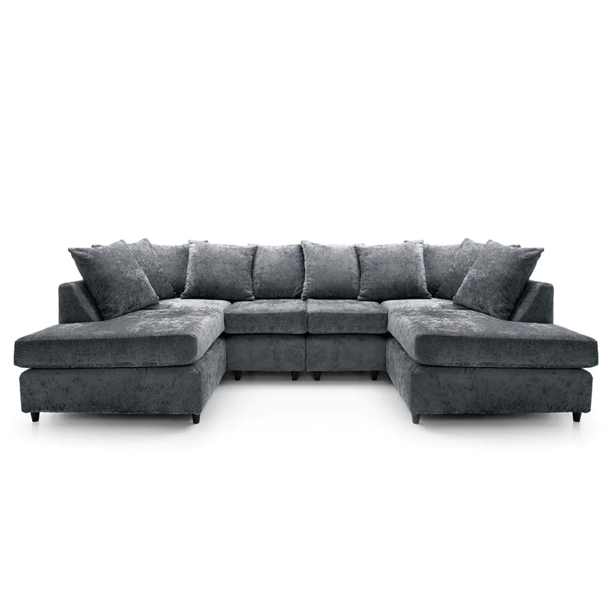 Corner Sofa - HENRY Crushed Chenille Fabric 6 Seater U Shaped Sofa - Dark Grey