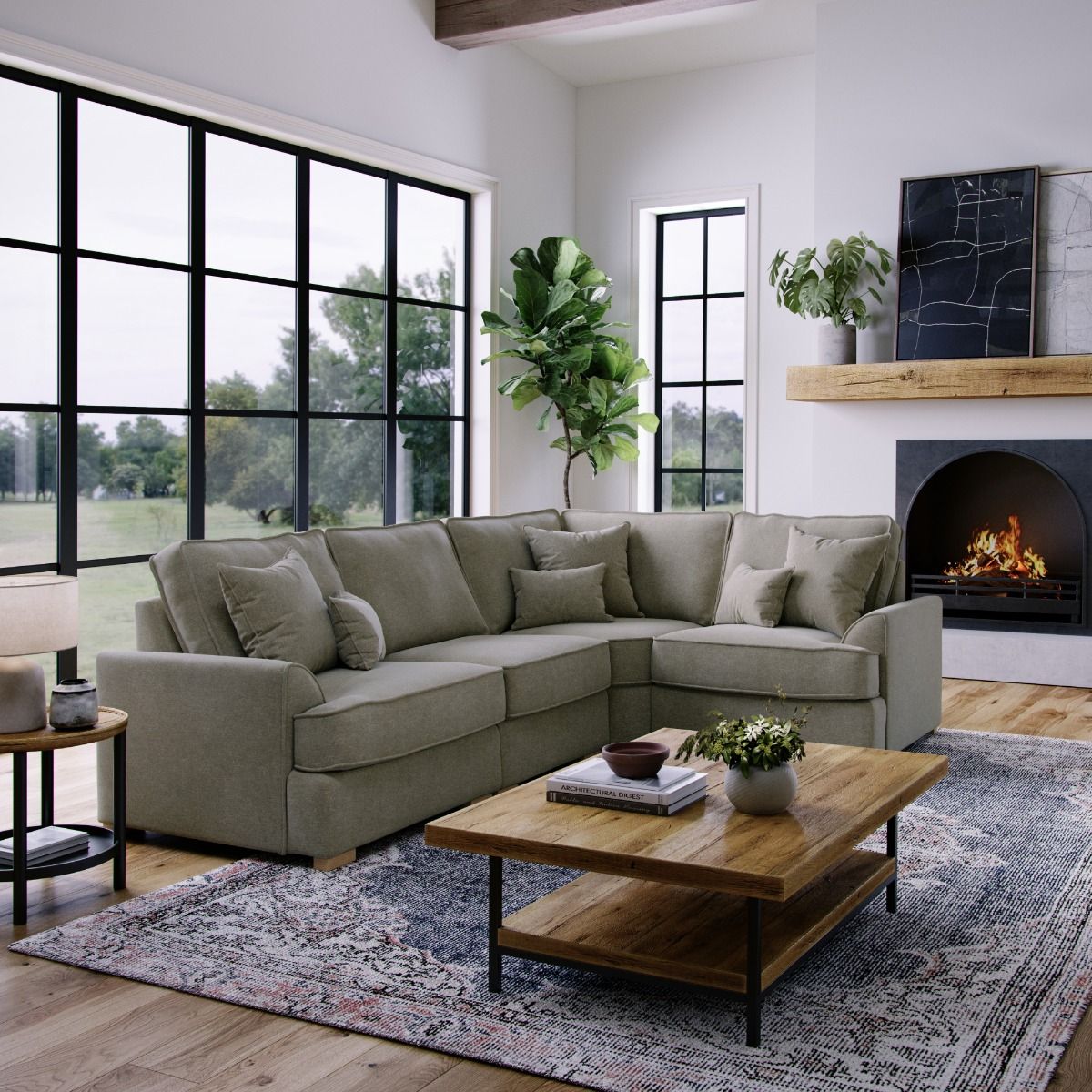Corner Sofa - HERITAGE Fabric 3 Seater Left Hand Facing - Dark Beige