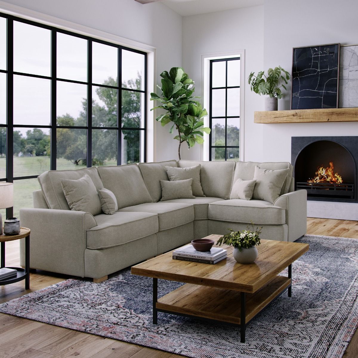Corner Sofa - HERITAGE Fabric 3 Seater Left Hand Facing - Light Beige