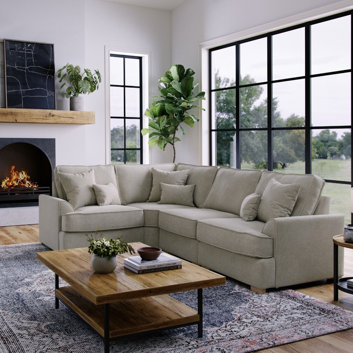 Corner Sofa - HERITAGE Fabric 3 Seater Right Hand Facing - Light Beige