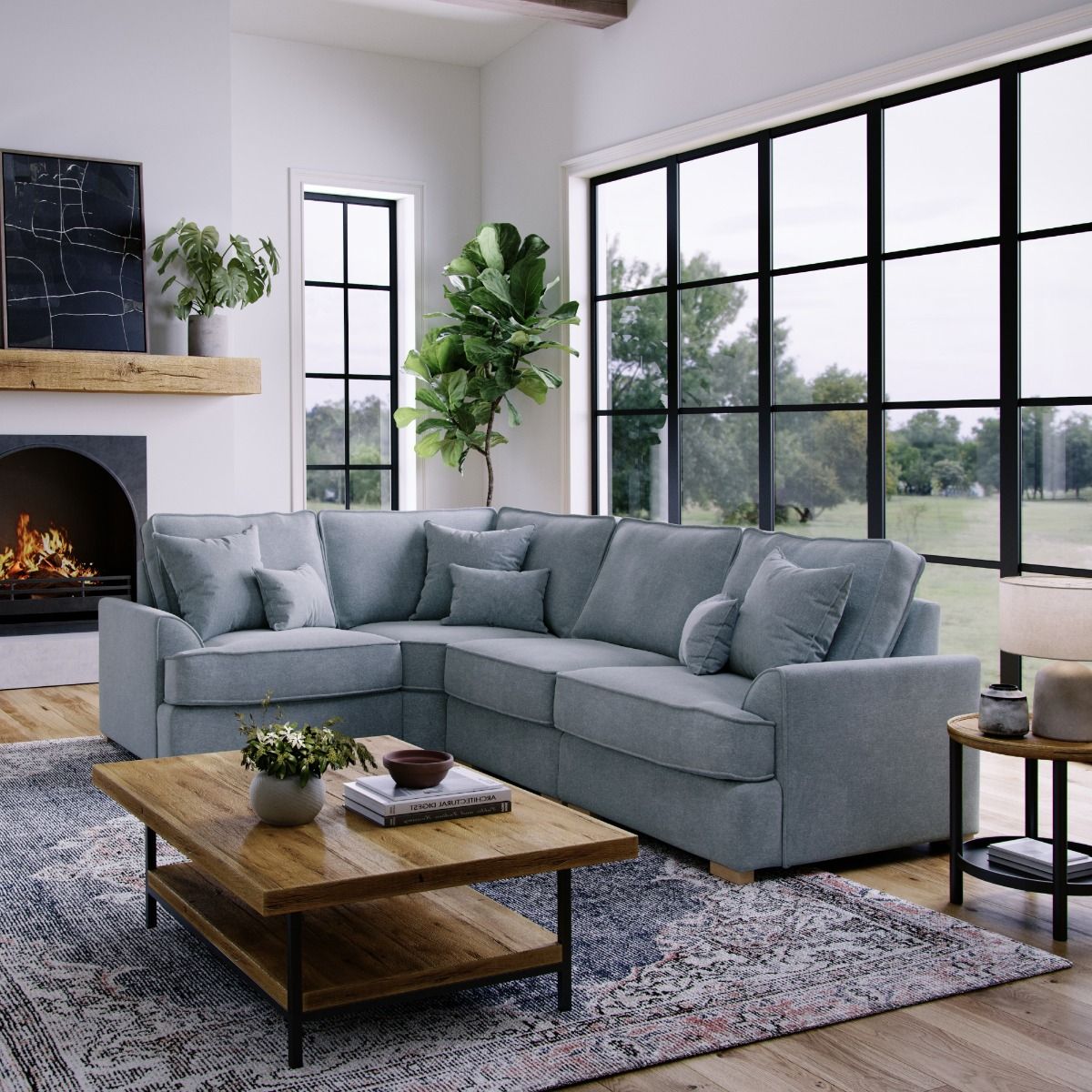 Corner Sofa - HERITAGE Fabric 3 Seater Right Hand Facing - Light Blue