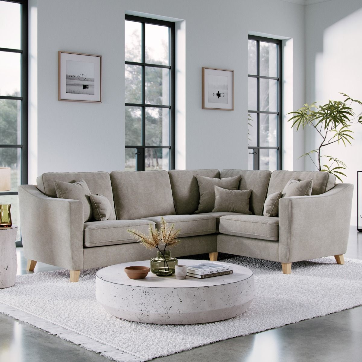 Corner Sofa - KRISTY Fabric 3 Seater Left Hand Facing - Light Beige