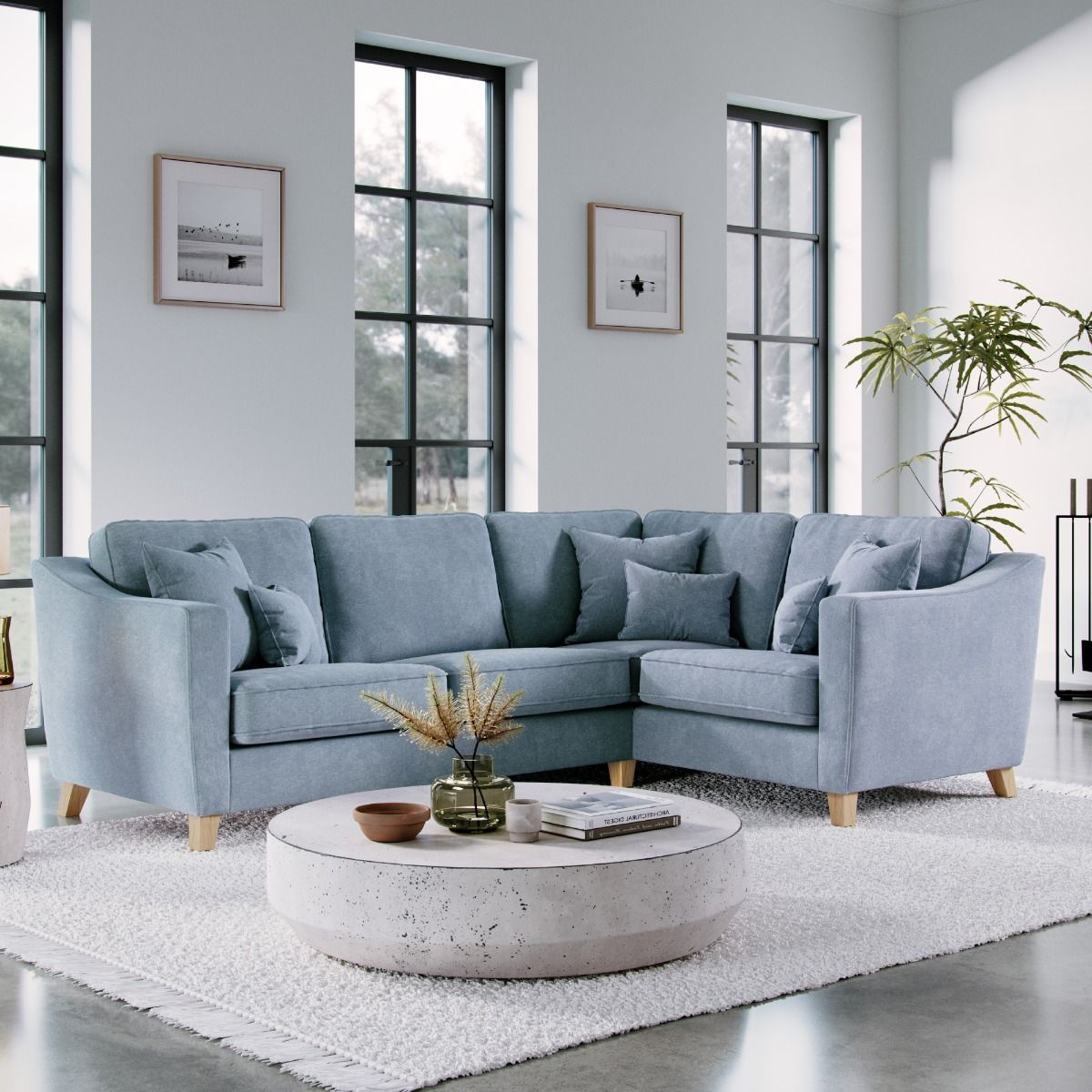 Corner Sofa - KRISTY Fabric 3 Seater Left Hand Facing - Light Blue