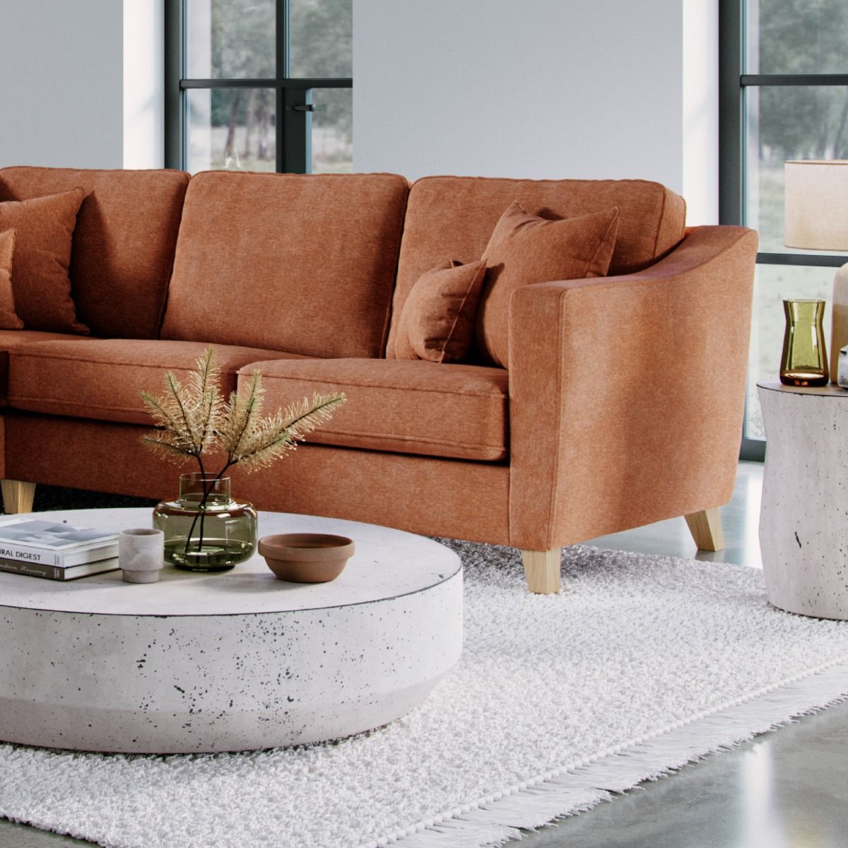 Corner Sofa - KRISTY Fabric 3 Seater Right Hand Facing - Orange