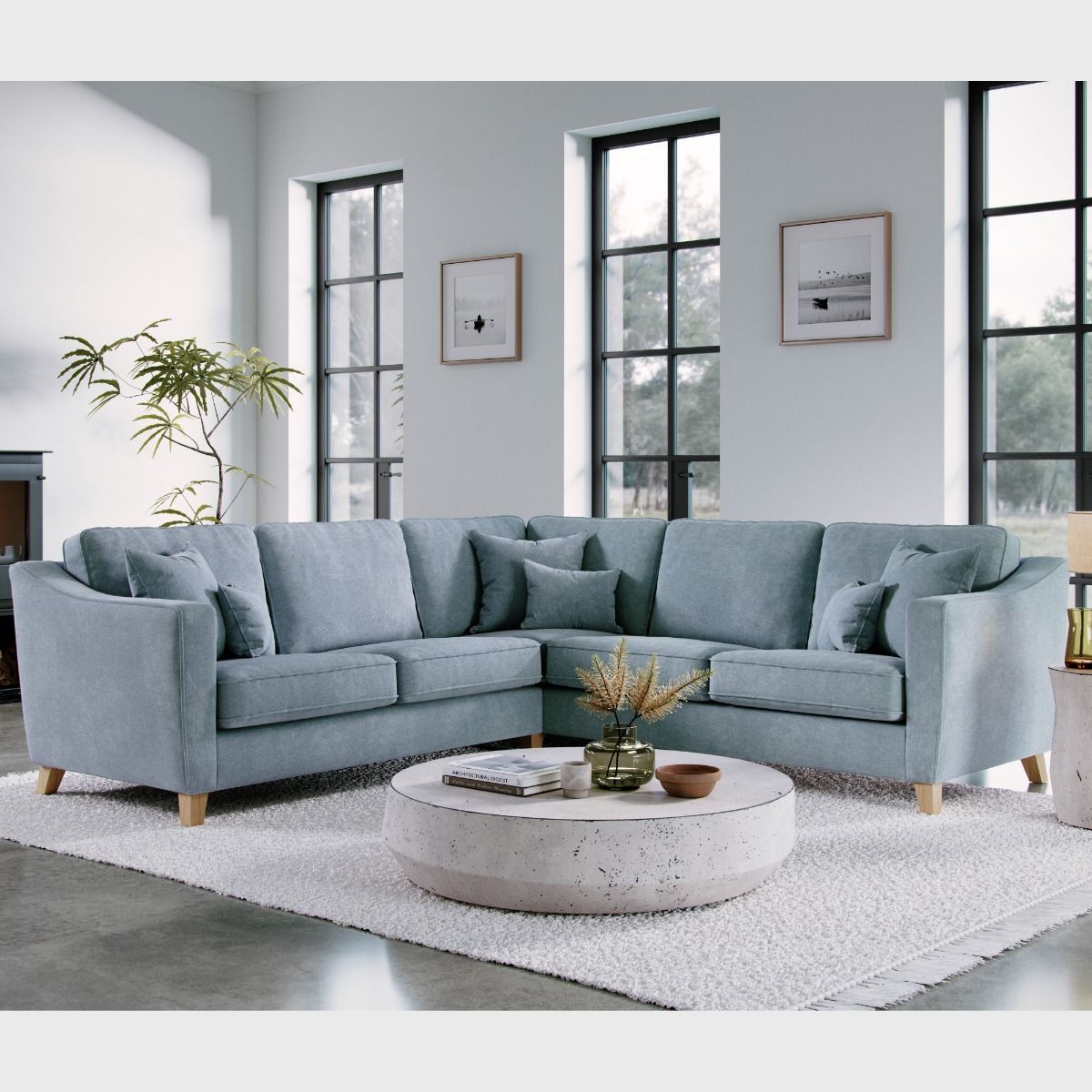 Corner Sofa - KRISTY Fabric 4 Seater Right Hand Facing - Light Blue