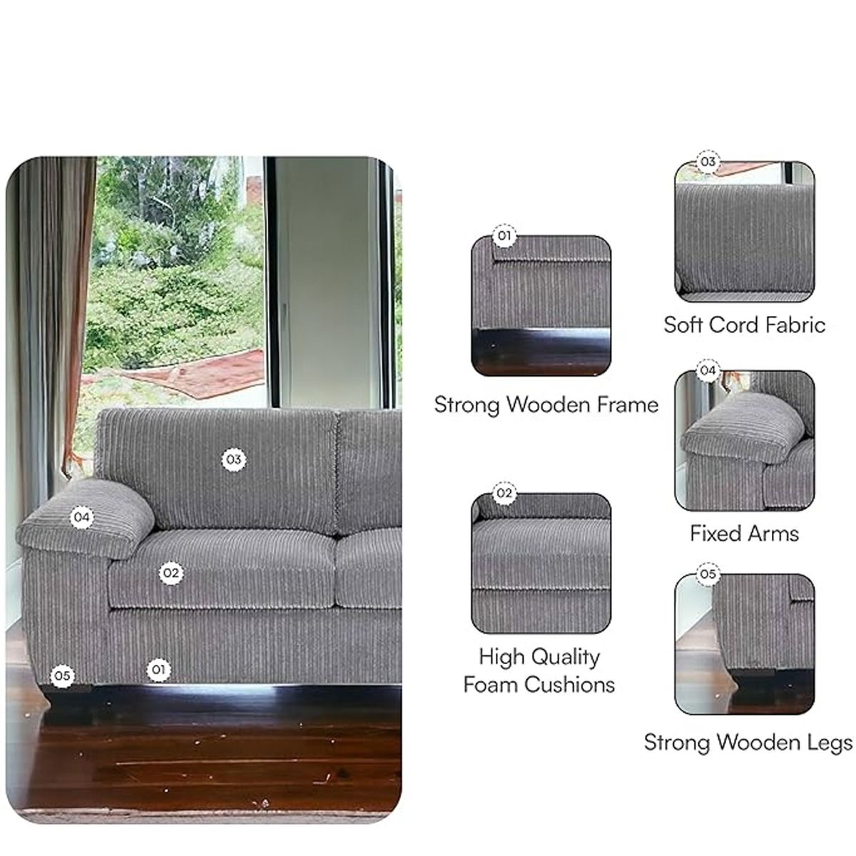 Corner Sofa - LARGE CORDURA Full Back Jumbo Cord Right Hand Grey