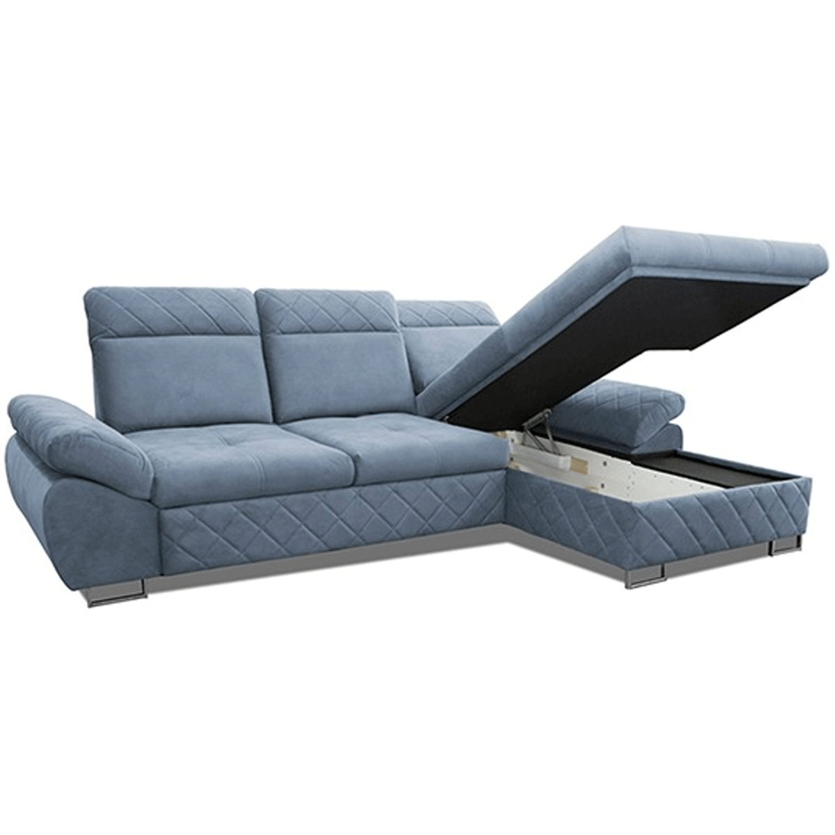 Its sleek L-shaped design, chrome legs, and adjustable headrest offer both style and comfort. Designed for versatility, it easily converts into a spacious bed perfect for accommodating overnight guests. Whether you're lounging or hosting, the ModoSky delivers contemporary charm and practical convenience, making it an ideal centrepiece for today’s modern home.