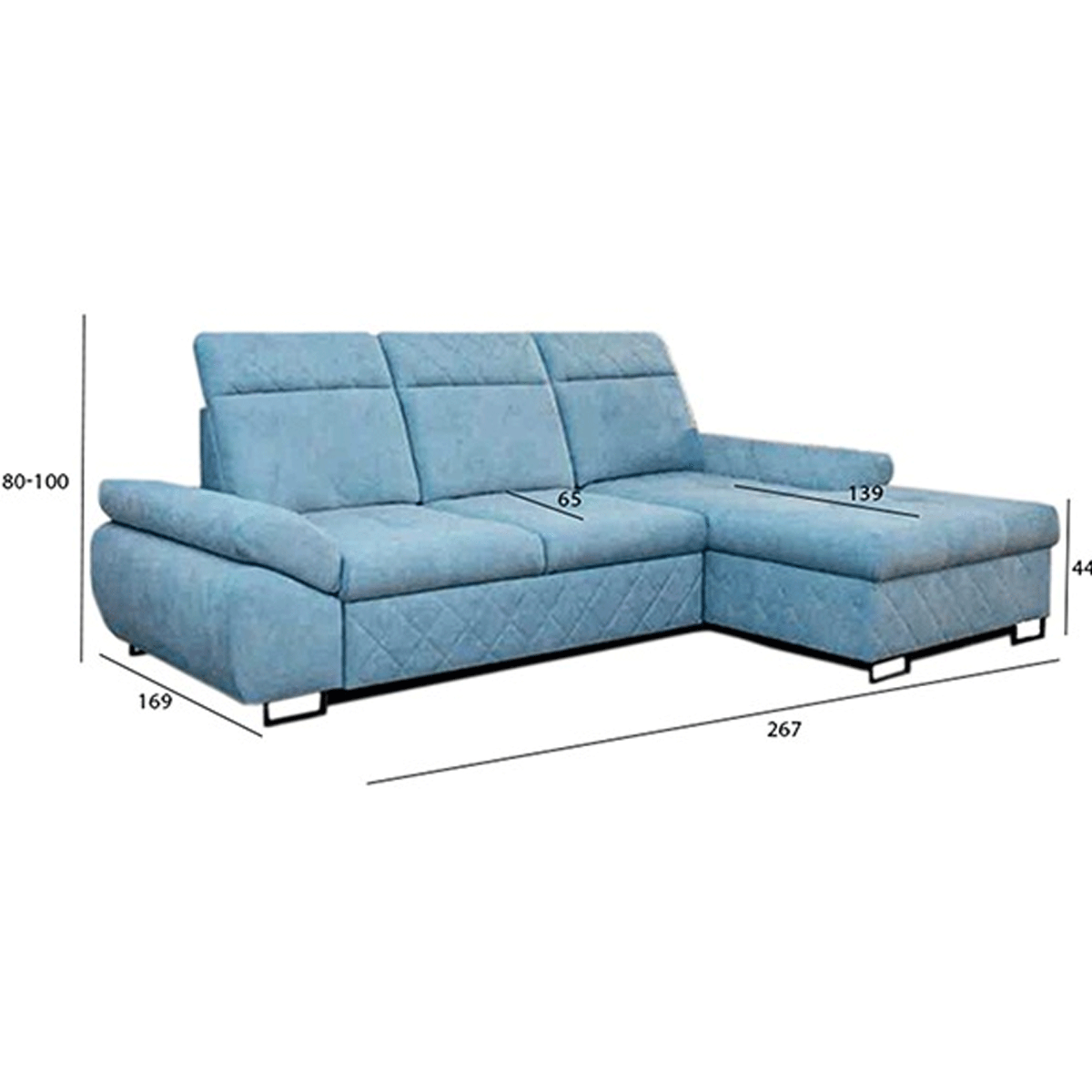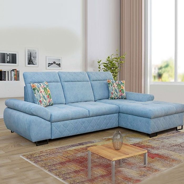 The ModoSky Corner Sofa Bed in refreshing sky blue adds a youthful, vibrant touch to any living space, effortlessly blending modern aesthetics with everyday functionality.