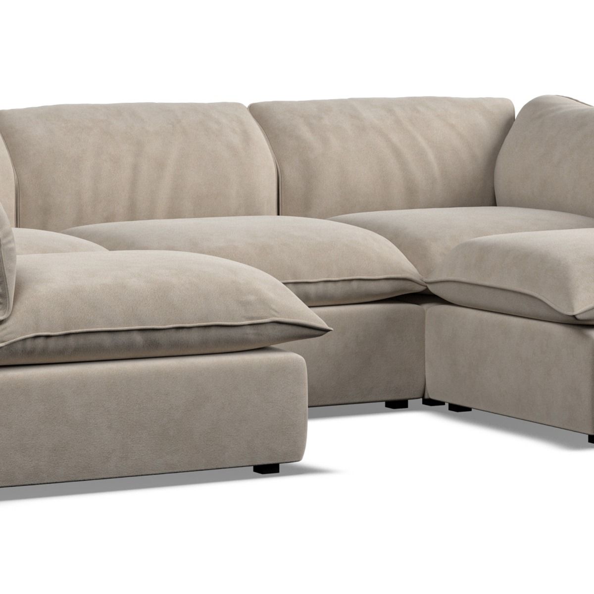 Corner Sofa - PUEBLA Fabric 5 Seater U Shaped Eggshell - Open End