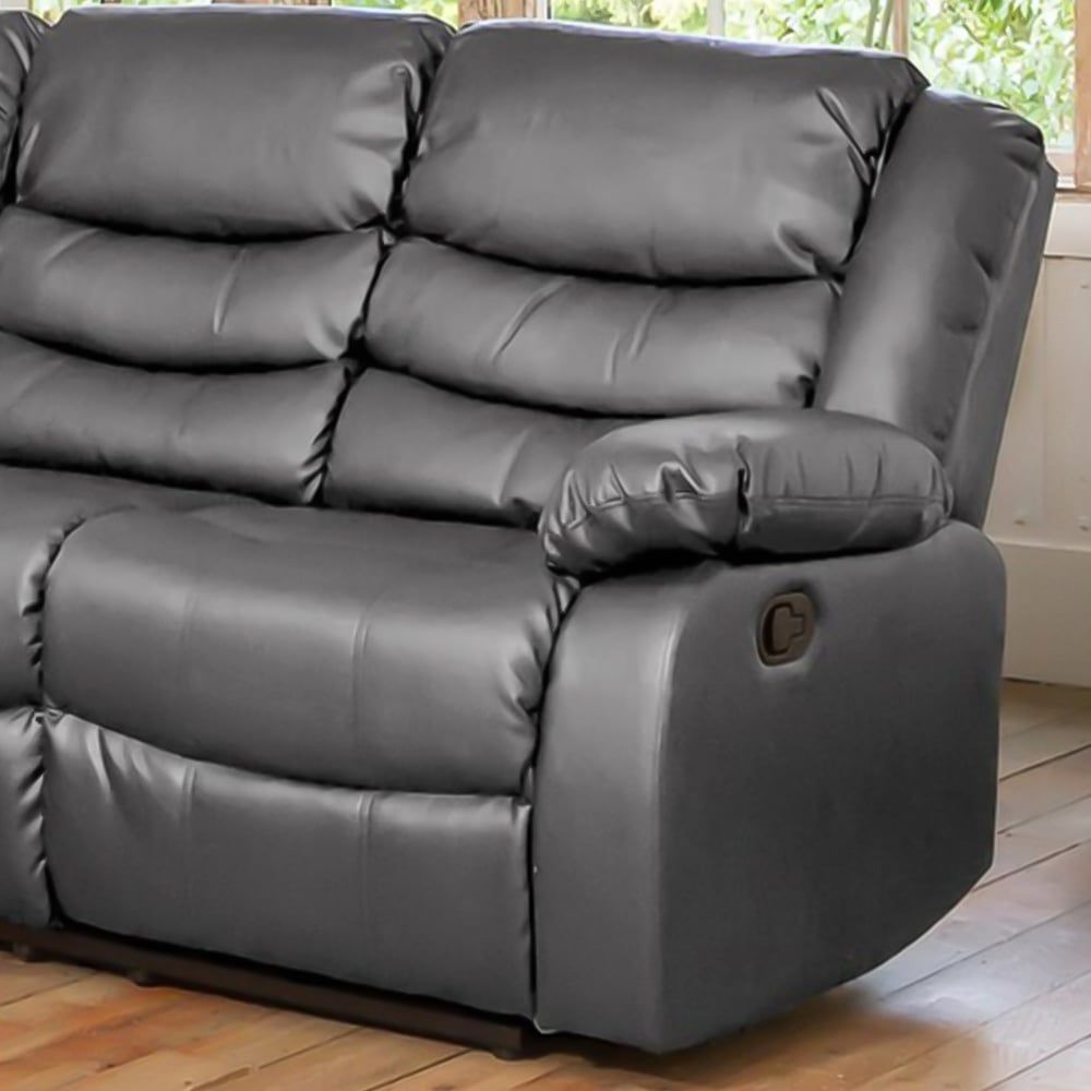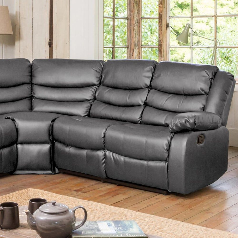 Corner Sofa - REGALUXE Leather Recliner 4 Seater L Shaped Sofa - Grey