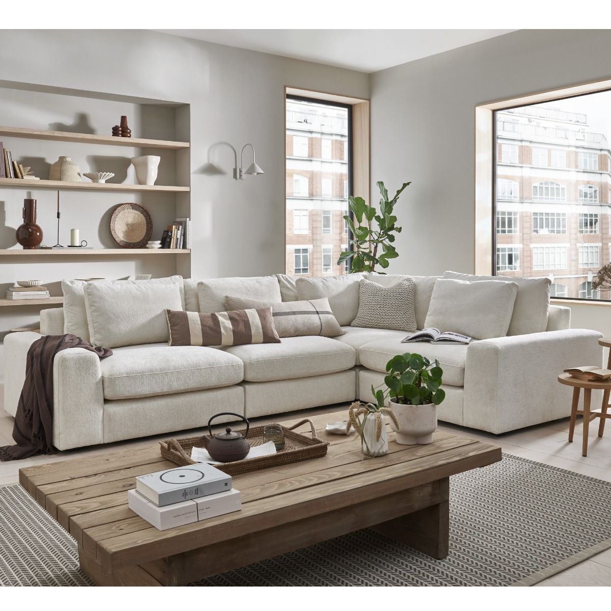 Corner Sofa - SOVA Fabric 3 Seater Right Hand Facing Ivory