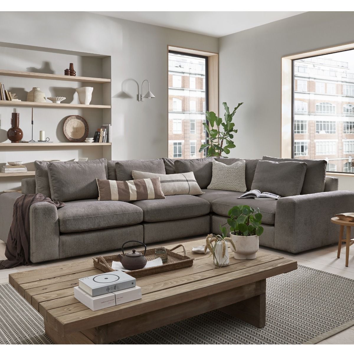 Corner Sofa - SOVA Fabric 3 Seater Right Hand Facing Mocca