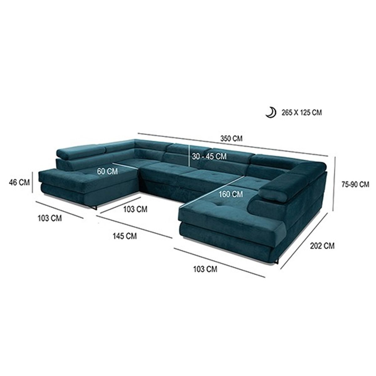 Corner Sofabed - CARDIFF Velvet Fabric 6 Seater U Shaped with Storage Space - Blue