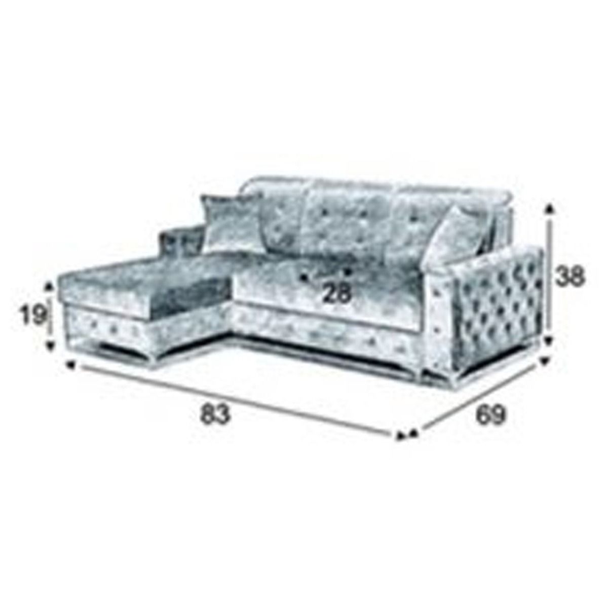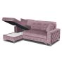 Corner Sofabed - STANLEY Velvet Fabric 3 Seater L Shaped Left Hand Facing - Pink