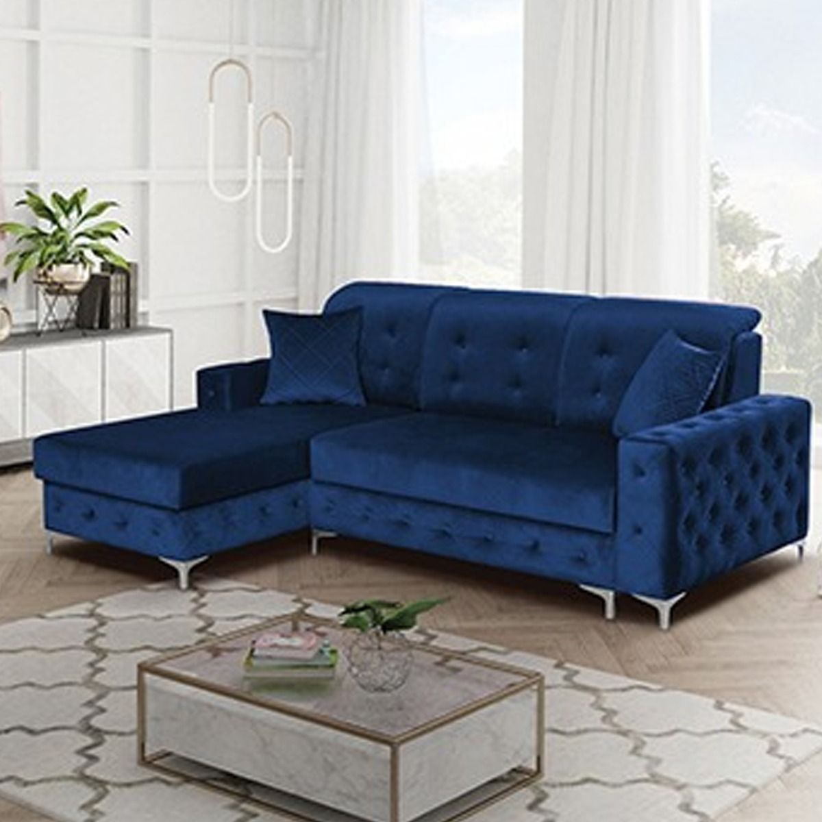 Corner Sofabed - STANLEY Velvet Fabric 3 Seater L Shaped Right Hand Facing Sofa - Blue