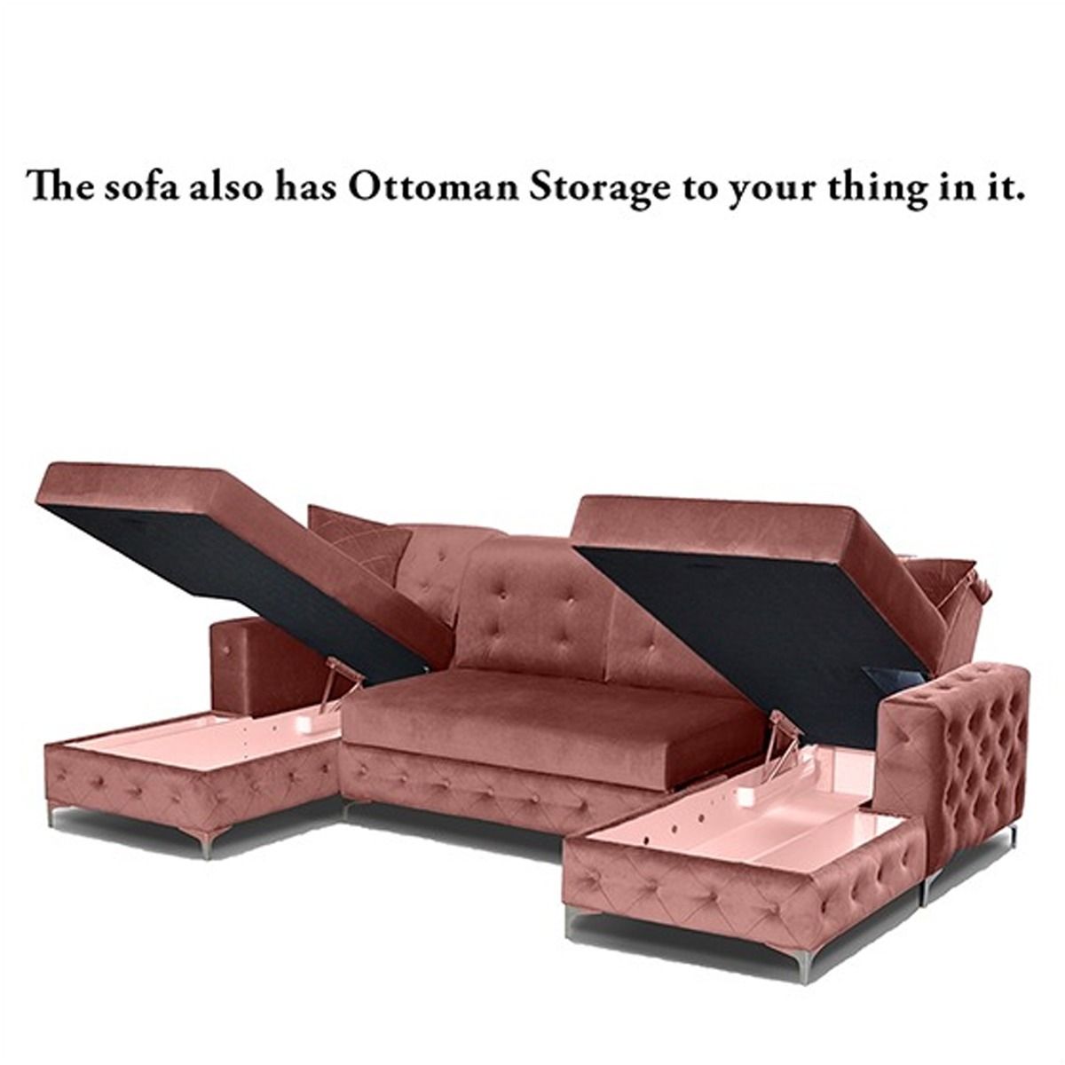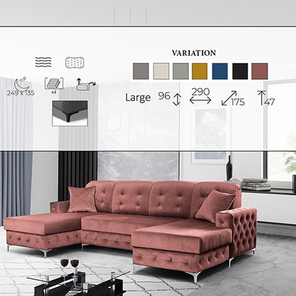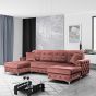 Corner Sofabed - STANLEY Velvet Fabric 4 Seater U Shaped Sofa - Pink