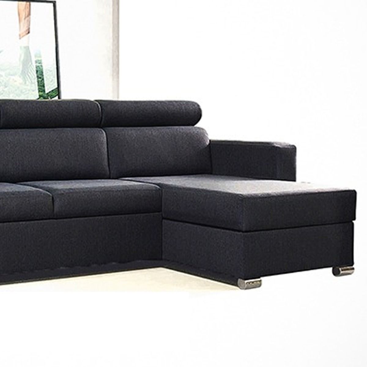 Corner Sofabed - WREXHAM Fabric 3 Seater L Shaped Sofa - Black