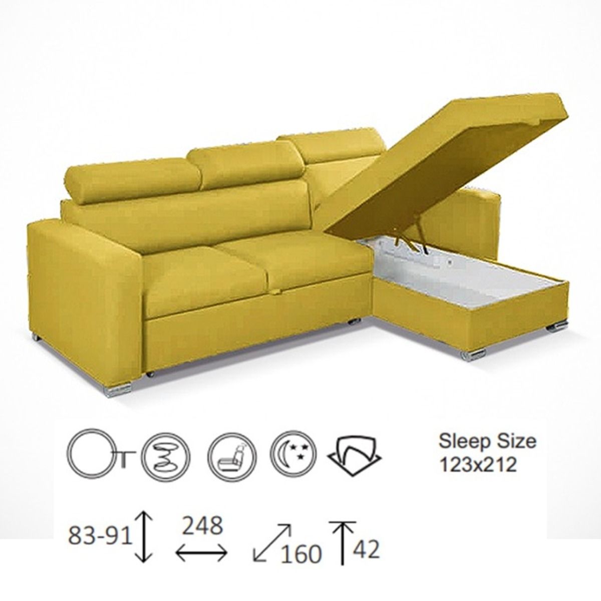 Corner Sofabed - WREXHAM Fabric 3 Seater L Shaped Sofa - Yellow