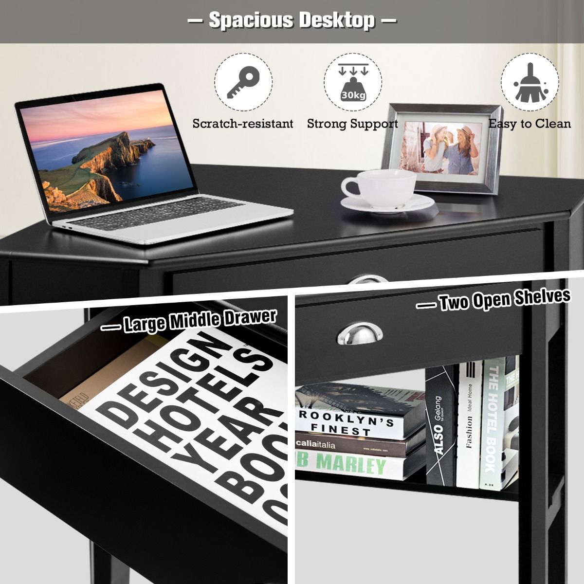You're reviewing:Corner Table / Computer Desk with Drawer and Shelves-Black