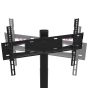 Glass base size: 55 x 38 cm W x D, Glass shelf size: 40 x 26 cm W x D, Glass base thickness: 8 cm, Glass shelf thickness: 5 cm, Compatible VESA size from 200 x 200 cm to 600 x 400 cm, Suitable TVs from 32 to 65 cmch, Swivels up to 25 degrees left and righ