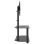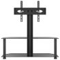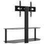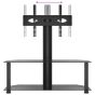 This corner TV stand combines a TV bracket and a 2-tier table in one, offering a practical solution to mount your TV and add extra storage space to your room. Swivelling function: This TV stand can be swivelled 25° left and right to provide you with a better viewing angle.Ample storage space: The media cabinet is designed with shelves, providing ample space to place DVDs, multimedia devices and other decorative items within the load-bearing range.Space saving: This floor TV stand has a compact design and doesn't take up much space, so you can place it in the corner of small living rooms, bedrooms, and offices. Additionally, it has a cable management system to save space and tidy up messy wires at the back of the TV stand cabinet.VESA compatibility: This TV unit is compatible with VESA sizes ranging from 100 x 100 mm to 600 x 400 mm, such as 600x400/400x400/400x300/400x200/200x400/300x300/300x200/200x200/200x100/100x200/100x100 mm. Good to know:Make sure your TV has four threaded mounting holes on the back of the screen. We recommend measuring the VESA hole spacings on your TV before purchasing to ensure compatibility.Make sure the width of your TV fits on the TV stand and that the height from the TV bracket to the top glass table also accommodates your TV.We provide various screws and spacers to fit your TV, but they may not work for all brands. You may need to use the original screws that came with your TV or buy special screws yourself.Warning:To prevent it being overturned, this product must be used with the provided wall attachment device.