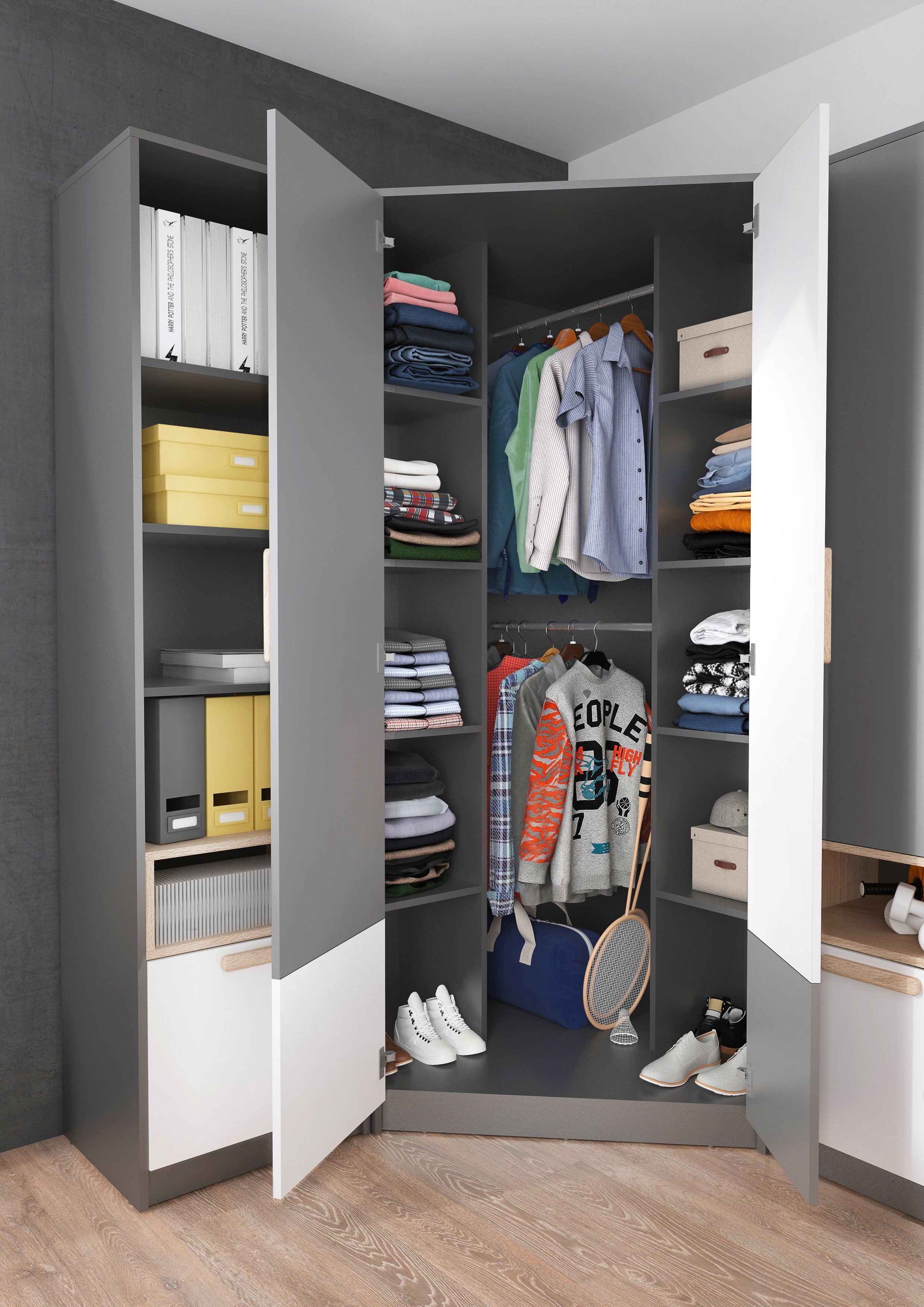 Corner Wardrobe - PORTO 2 Door Wardrobe Grey and White 95cm