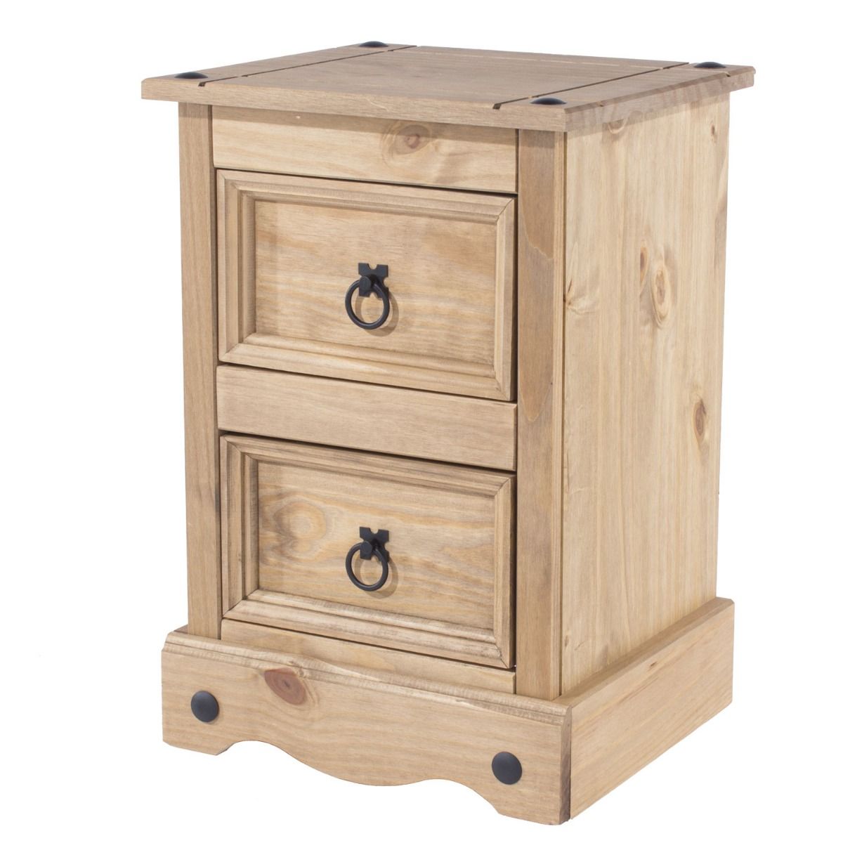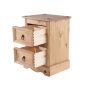 The 2 Drawer Petite Bedside Cabinet is a fantastic little addition to your bedroom with its simplistic Mexican design and ample storage space it makes for the perfect finishing touch to your home. Fantastic addition to your bedroom Mexican style Waxed pine finish. The table top is made from an incredibly sturdy 28mm thick solid pine with finger jointed paneling adding to the overall construction. The night table is sanded to a medium finish, leaving sanding lines as part of the overall aesthetic.