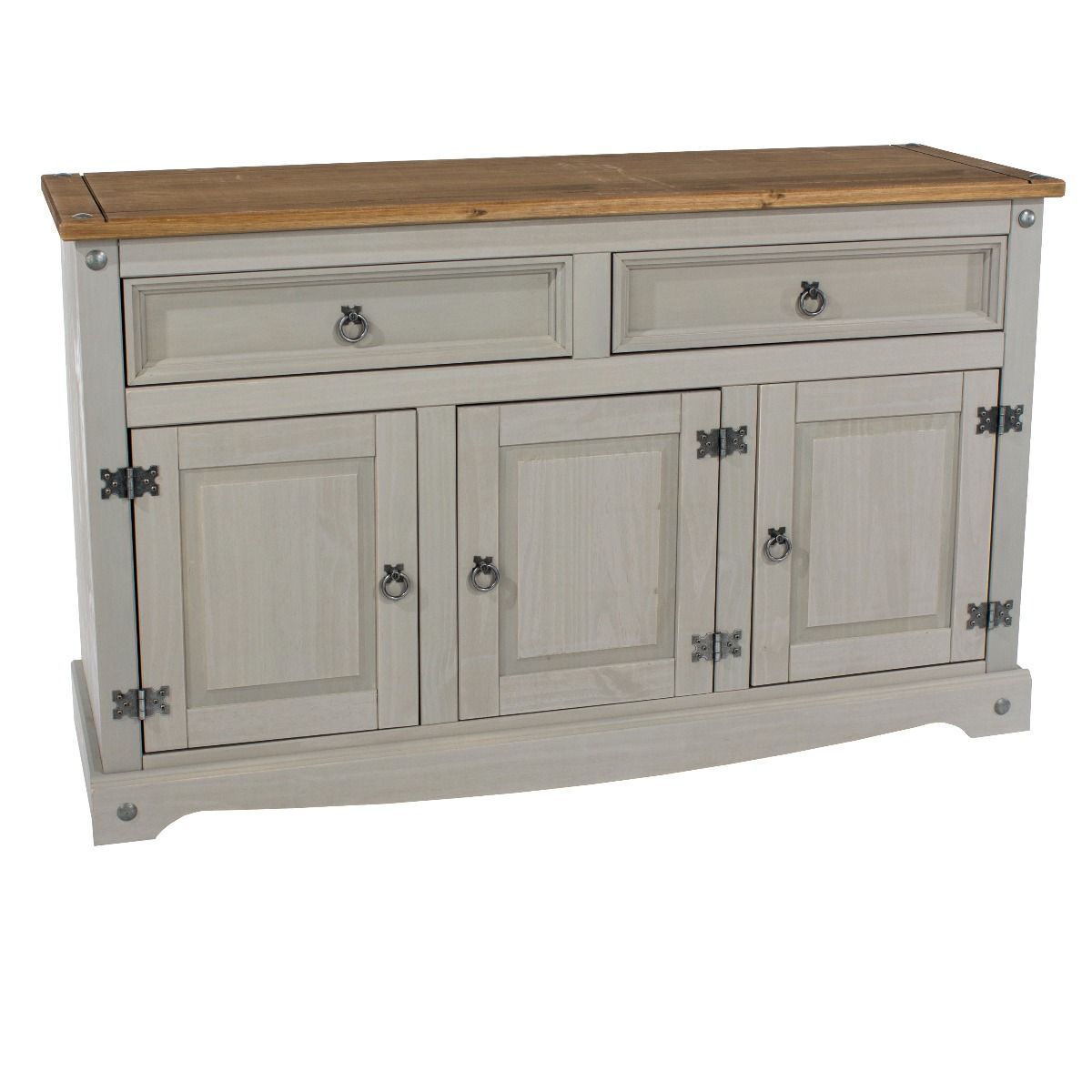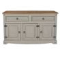 Corona is a rustic pine range with Mexican styling. Corona Rustic Pine Medium Sideboard has fresh, simple styling and ample storage space. The waxed pine finish complements a traditional home and the practical design fits into most rooms. There are 3 doors with access to an adjustable shelf and 2 drawers for smaller items- perfect for keeping your dining room essentials. Dovetailed joints strengthen the drawers, extending the durability of the piece. Supplied flat packed with fittings instructions and requires self assembly which is ideal for homes with restricted access.