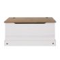 The Corona Pine Ottoman Box is a clean and simple storage solution for the bedroom that is as versatile as it is beautiful. This stunning Ottoman Box is crafted from a solid 16mm thick pine with added 3.8mm plywood backing for even more support. The lid and bottom skirting are made from an incredibly sturdy 28mm thick solid pine with their straight ad clean design adding to the overall construction. The Ottoman Box also feature decorative "drop" style metal handles, adding to the traditional styling of this piece of furniture.